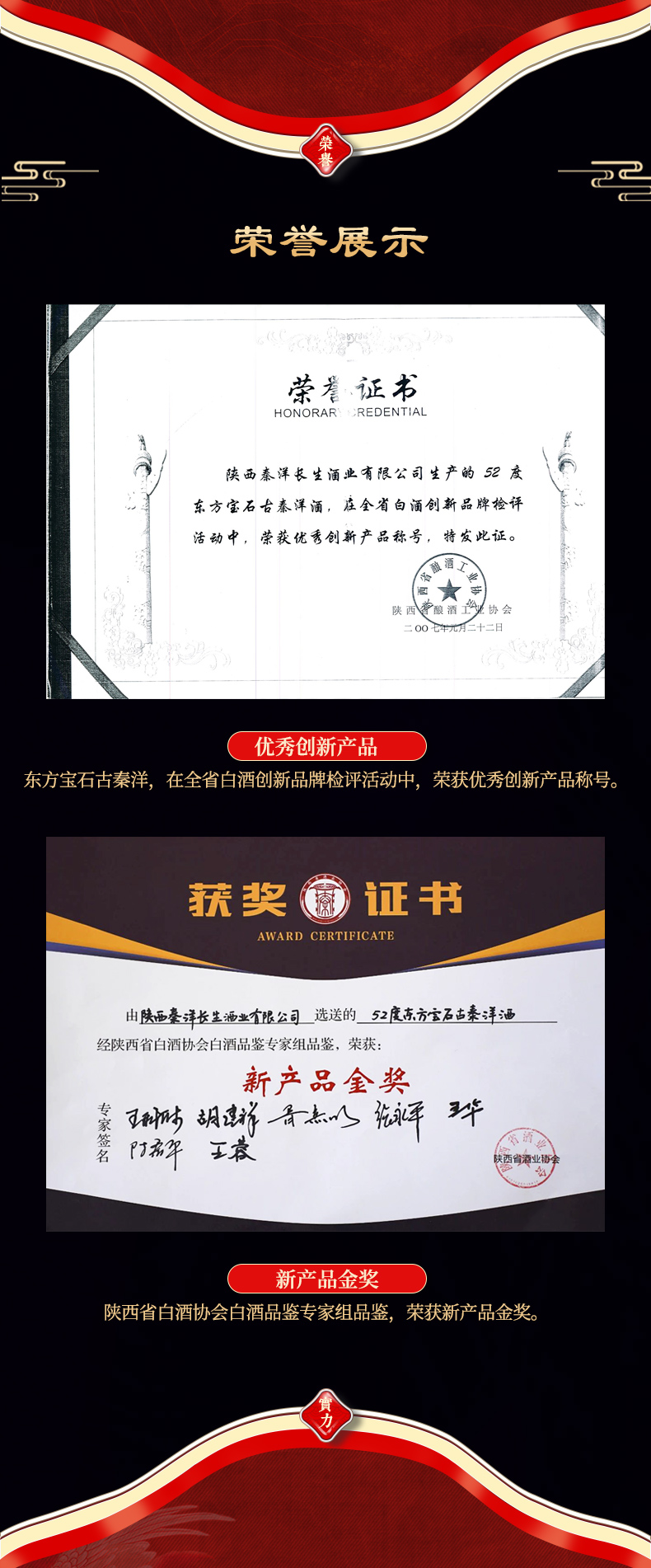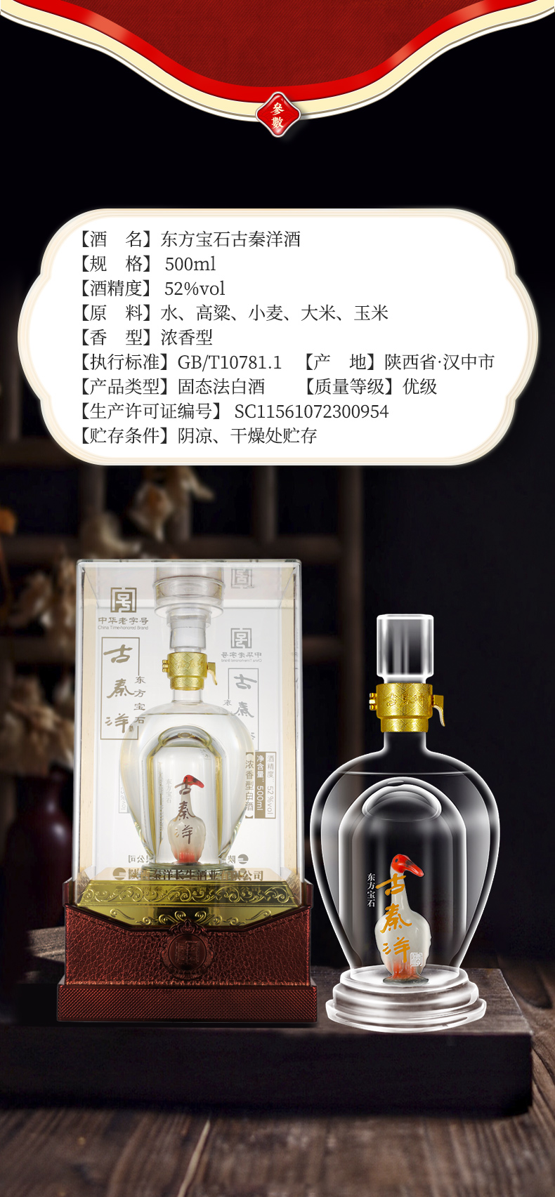 中华老字号“秦洋”牌 52°东方宝石古秦洋酒