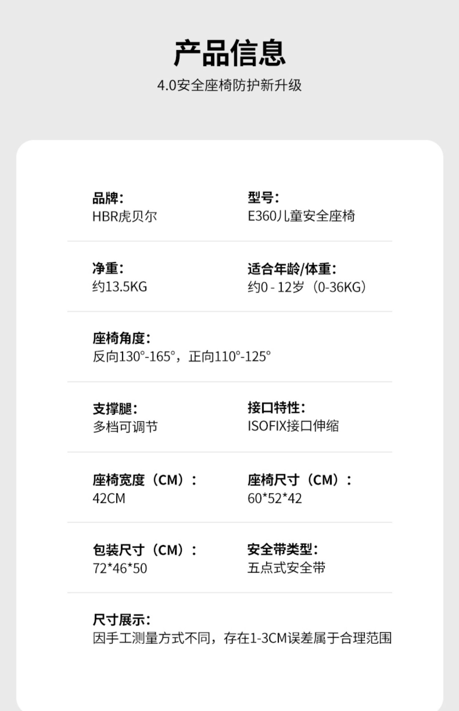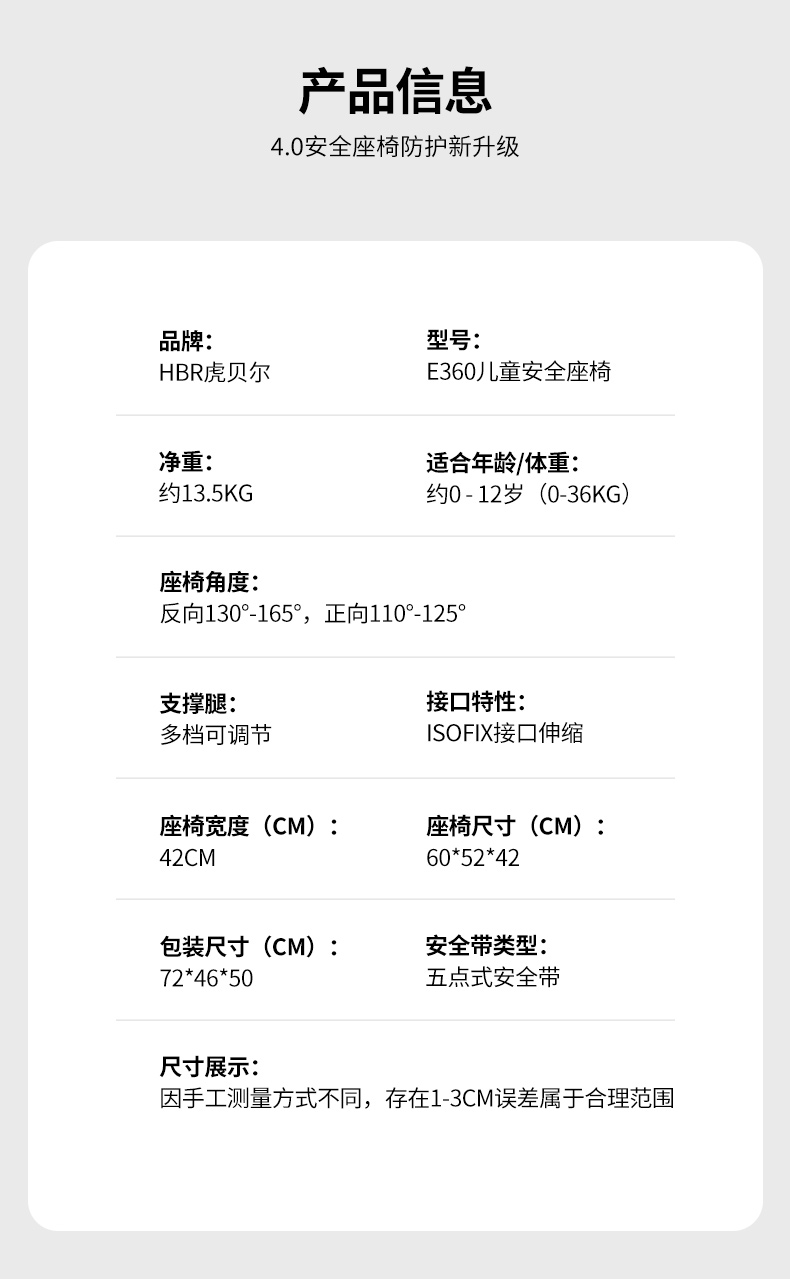 【HBR/虎贝尔】E360头等舱 0-3-12岁 360°旋转