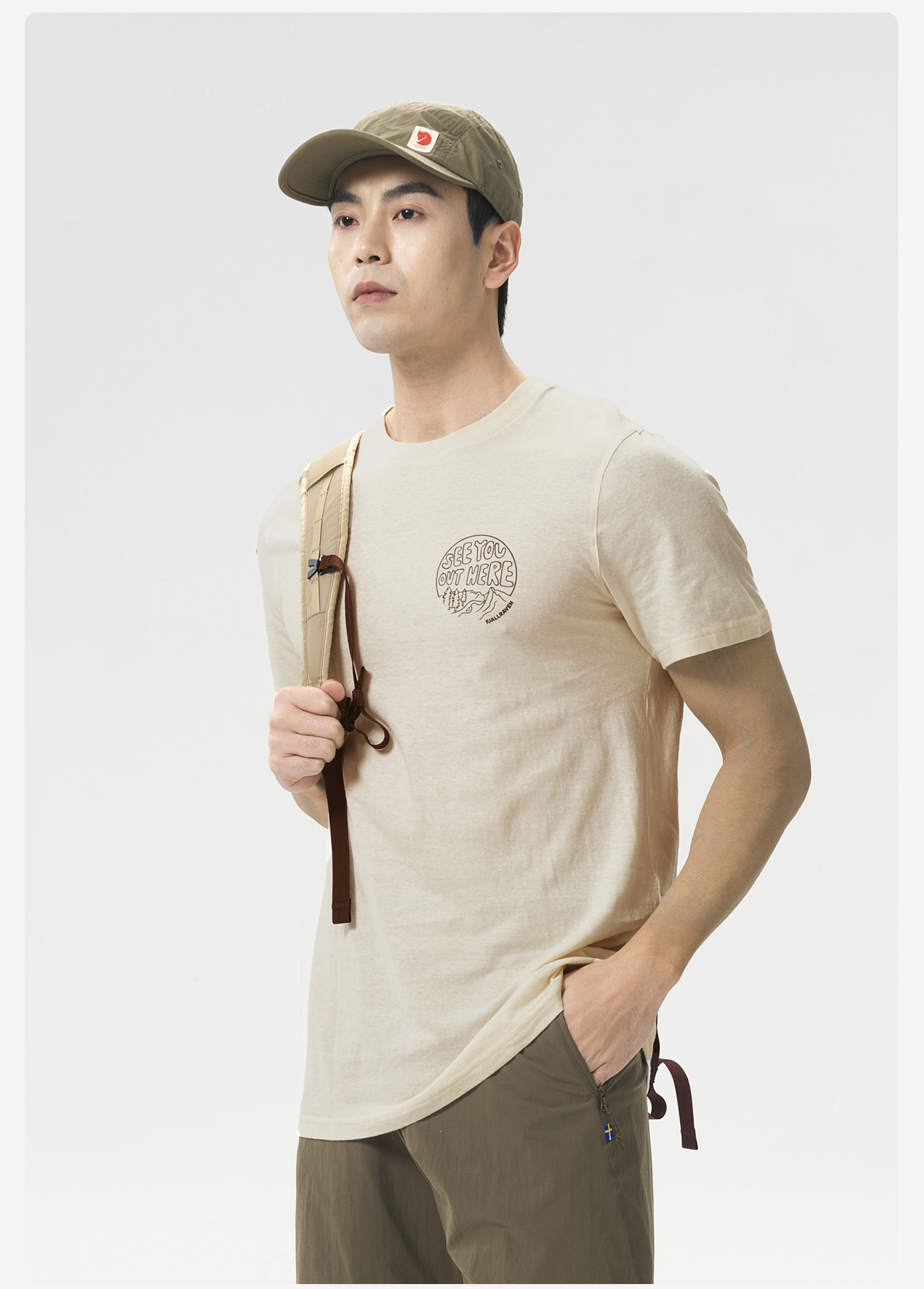 北极狐 男士户外运动短袖T恤 2025春夏徒步露营棉麻上衣12600265