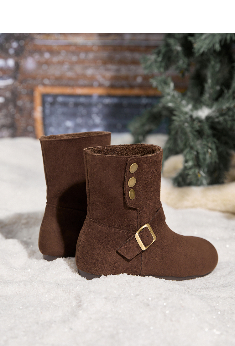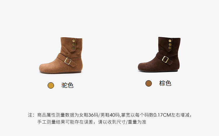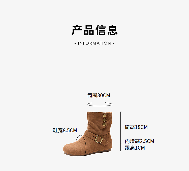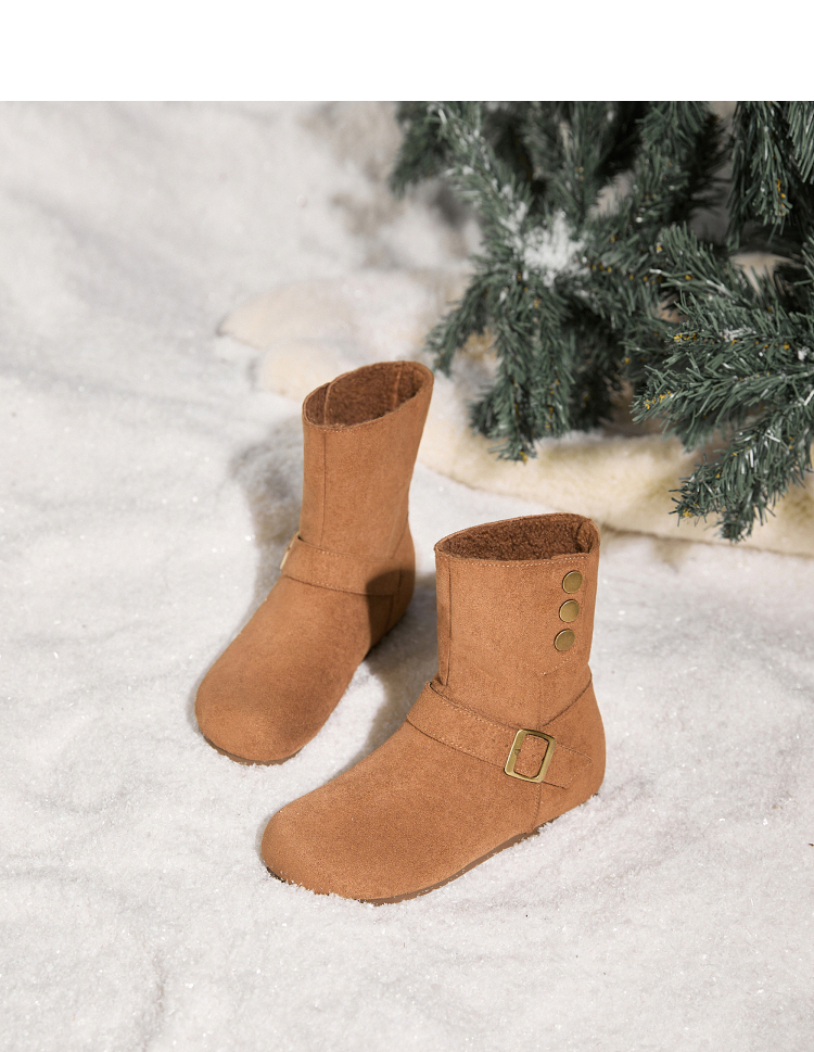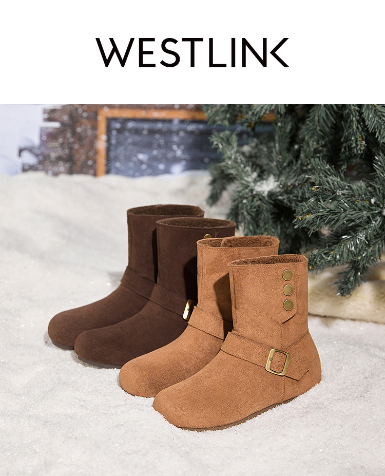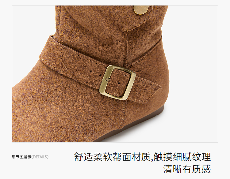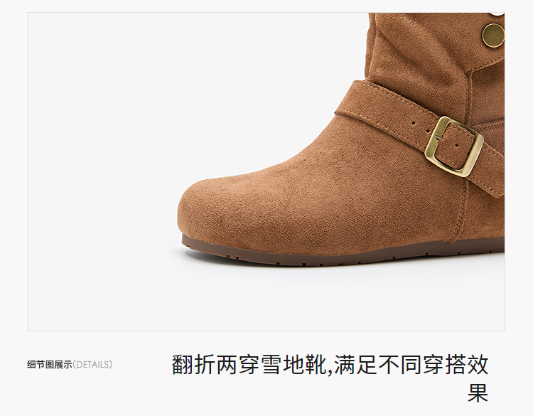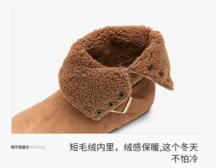 西遇加绒短靴女新款秋冬复古两穿勃肯风棉鞋内增高保暖雪地靴V2457347