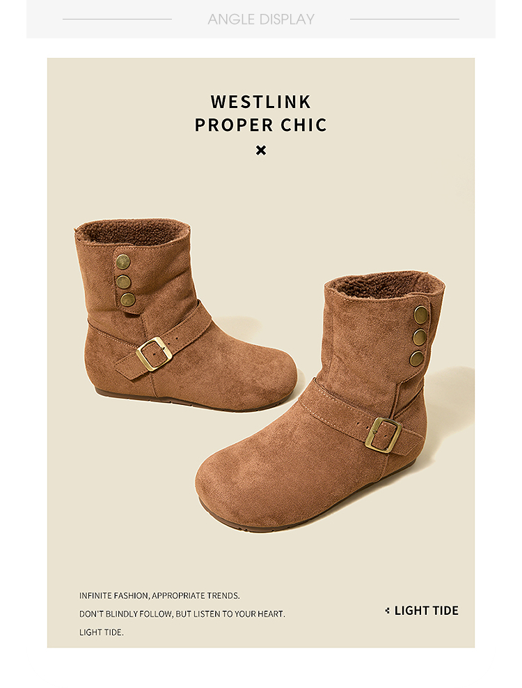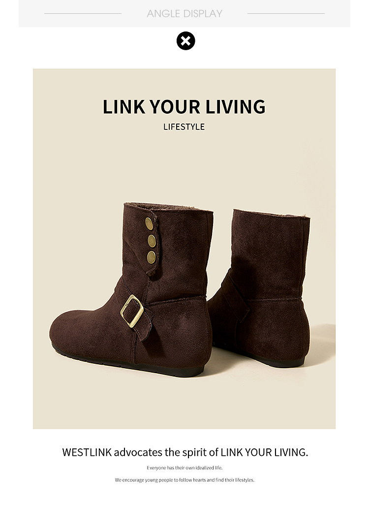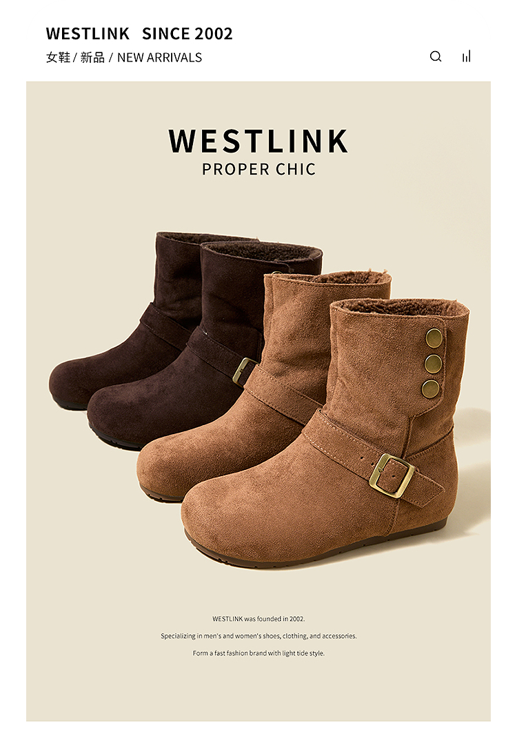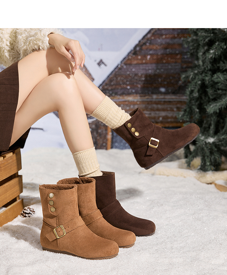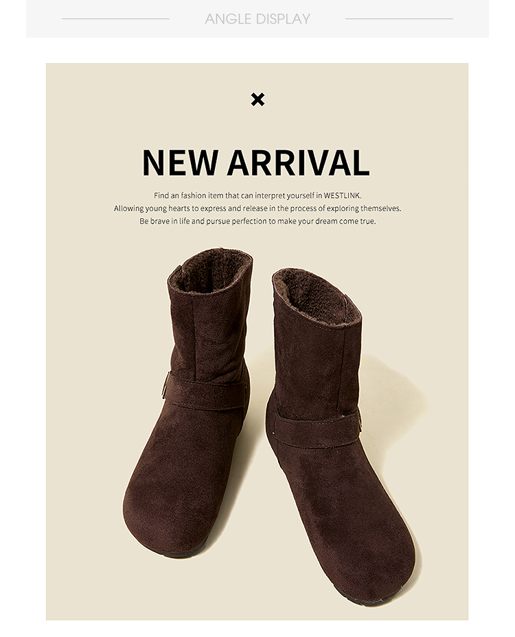 西遇加绒短靴女新款秋冬复古两穿勃肯风棉鞋内增高保暖雪地靴V2457347