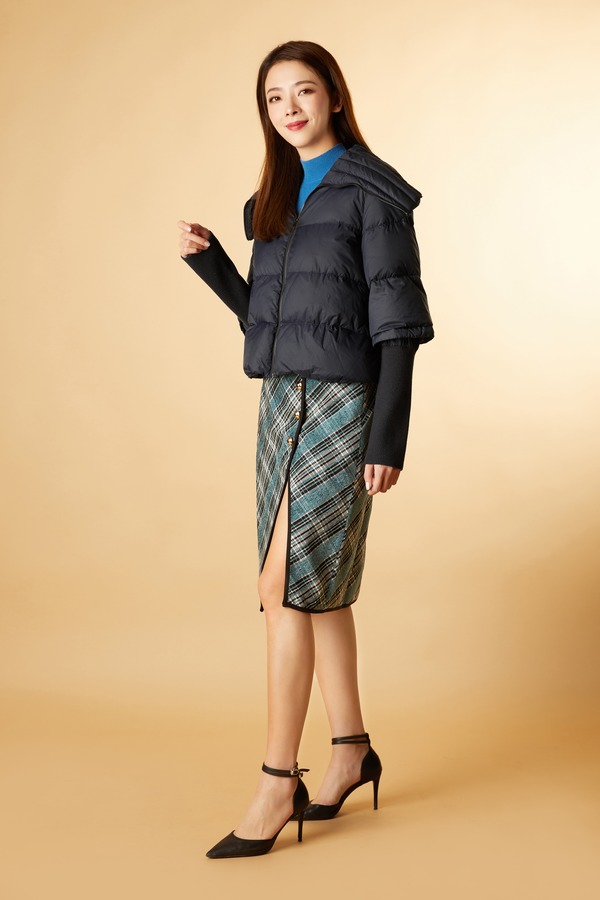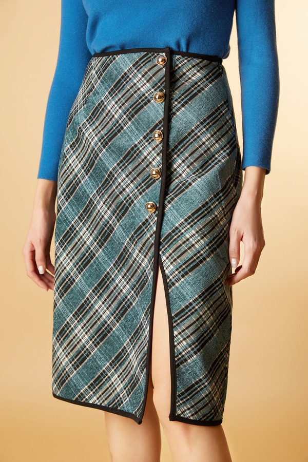 ANSUABEL 高开衩时尚格纹半裙 11378