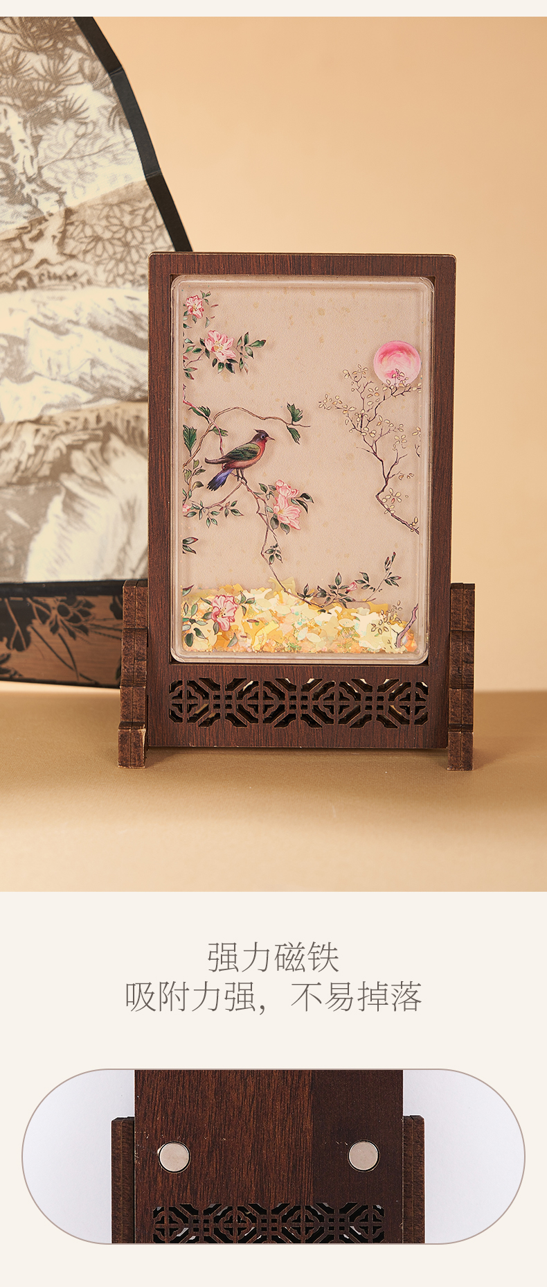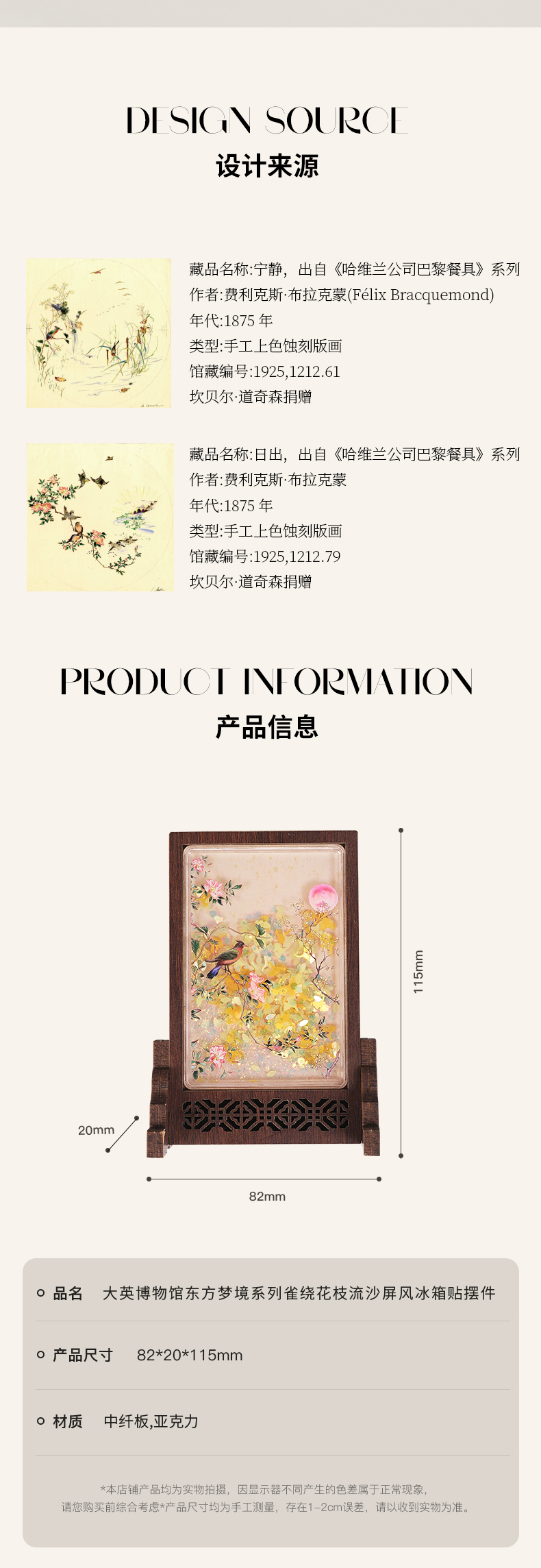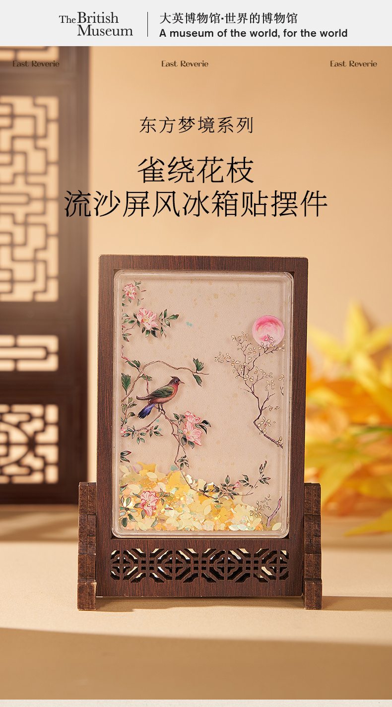 大英博物馆 东方梦境系列 雀绕花枝流沙屏风 冰箱贴摆件