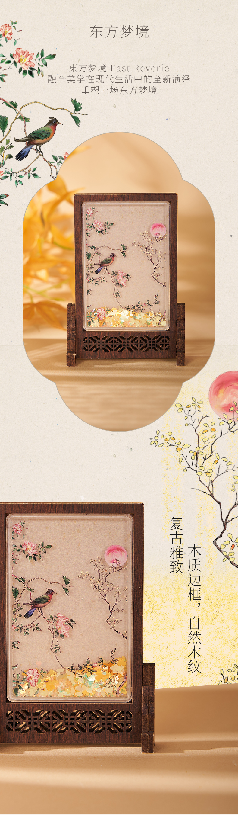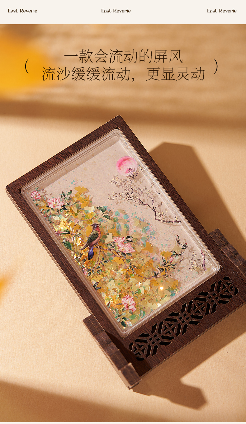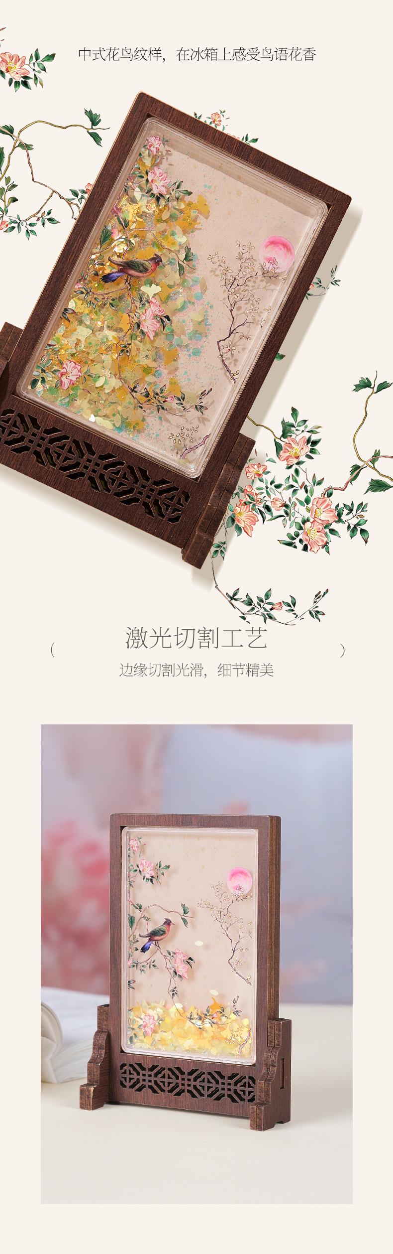 大英博物馆 东方梦境系列 雀绕花枝流沙屏风 冰箱贴摆件