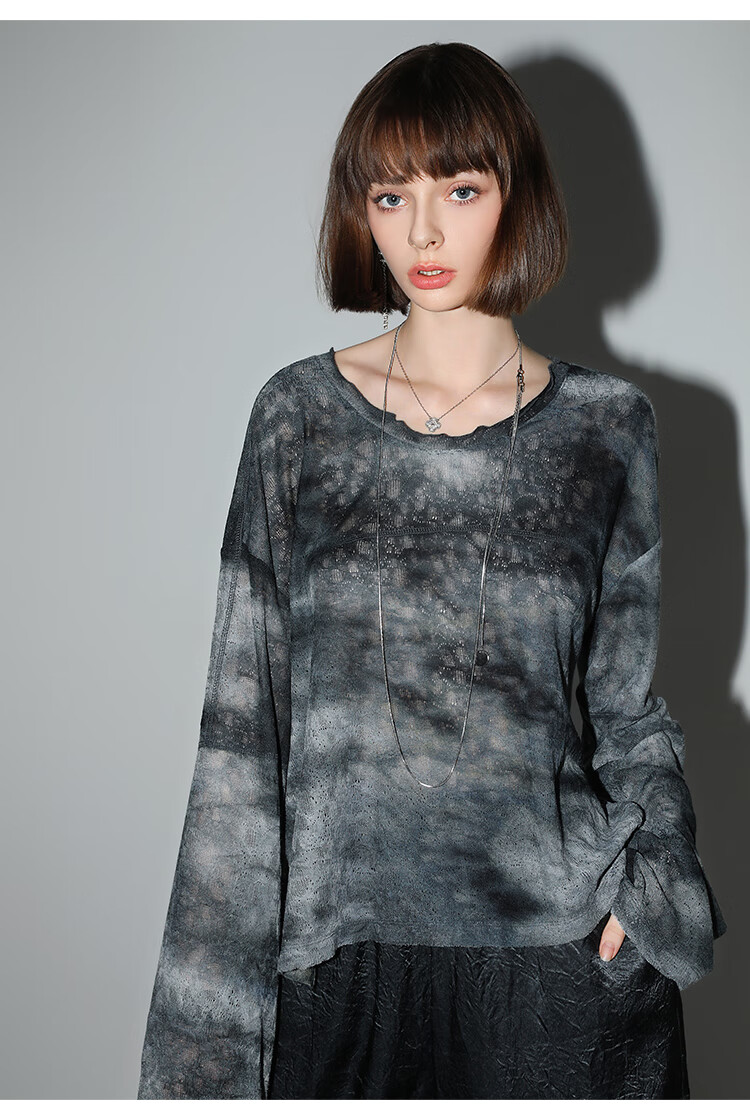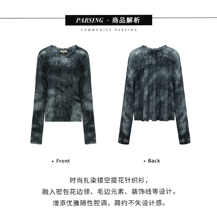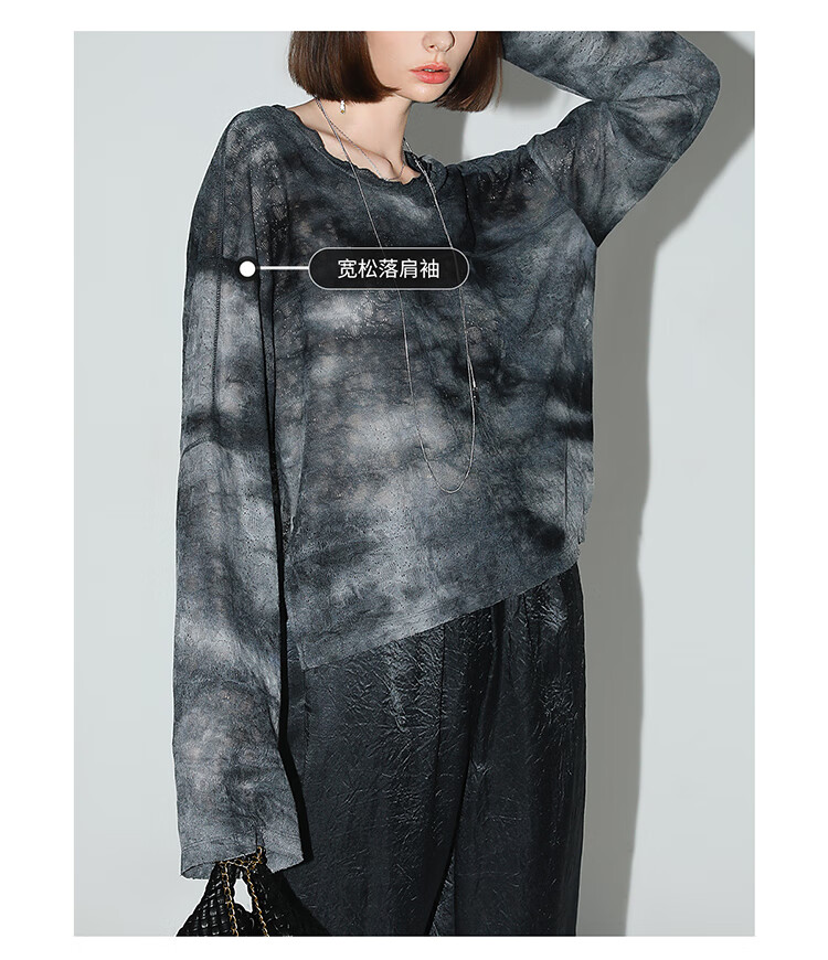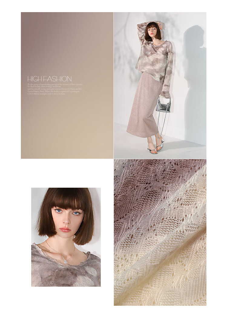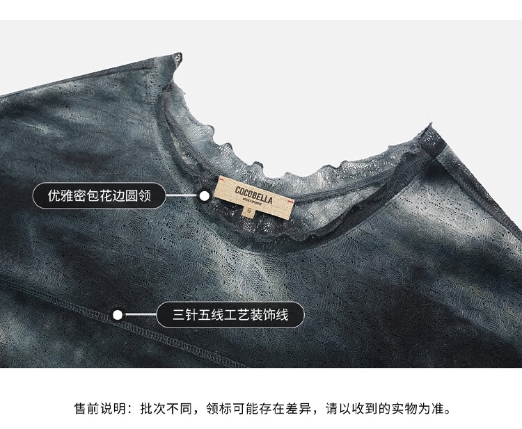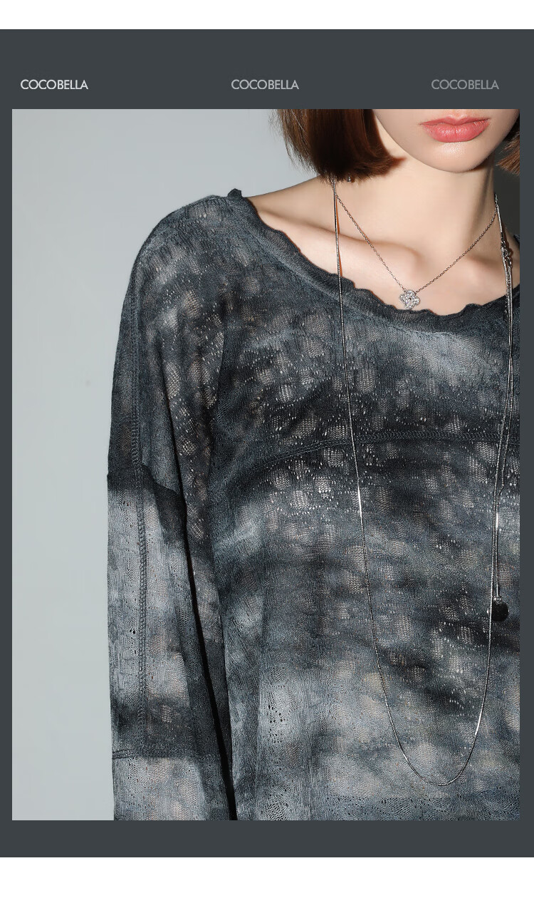 COCOBELLA手工扎染渐变镂空提花针织衫秋休闲套头罩衫TS7018