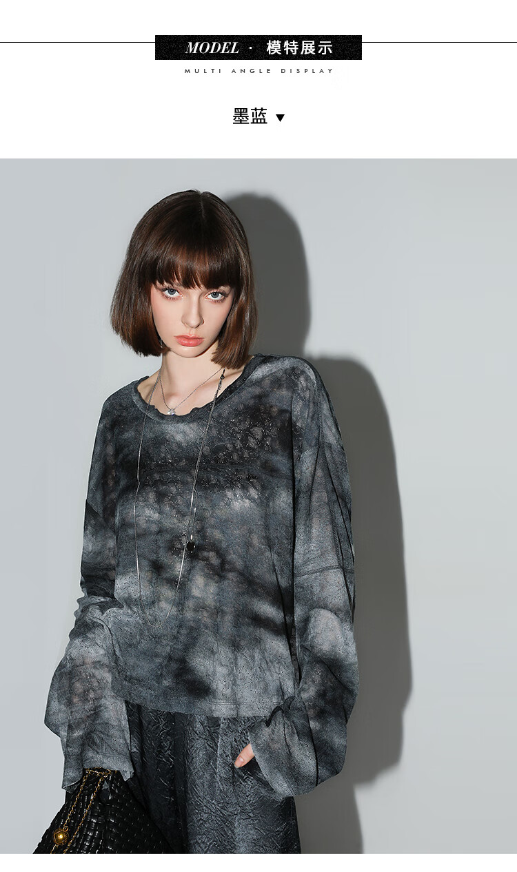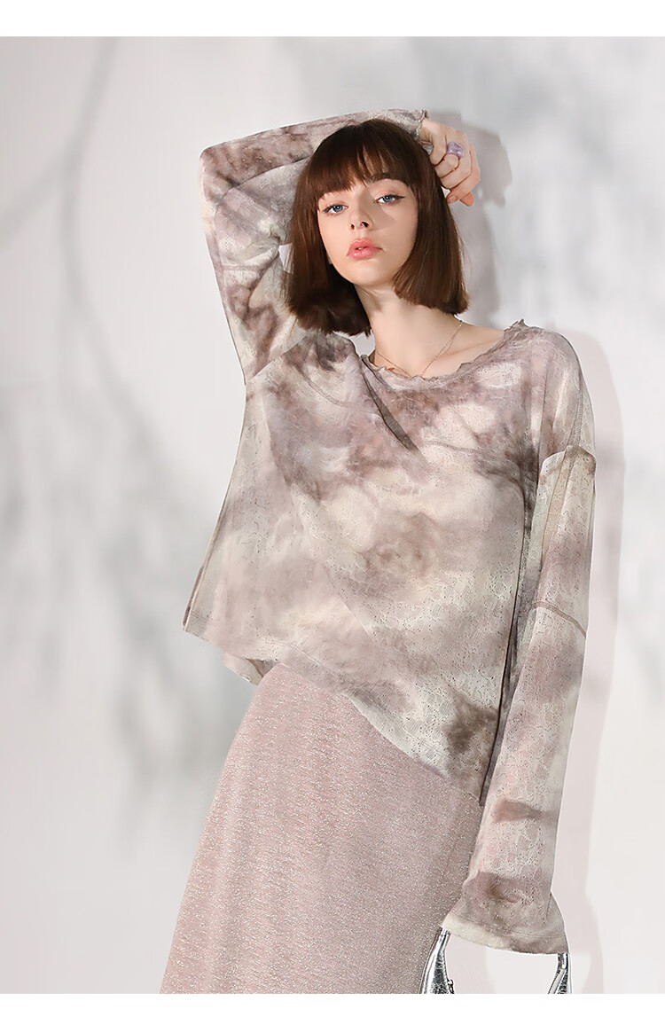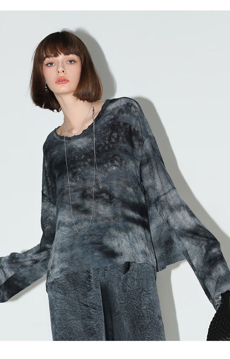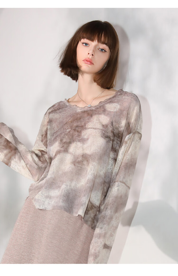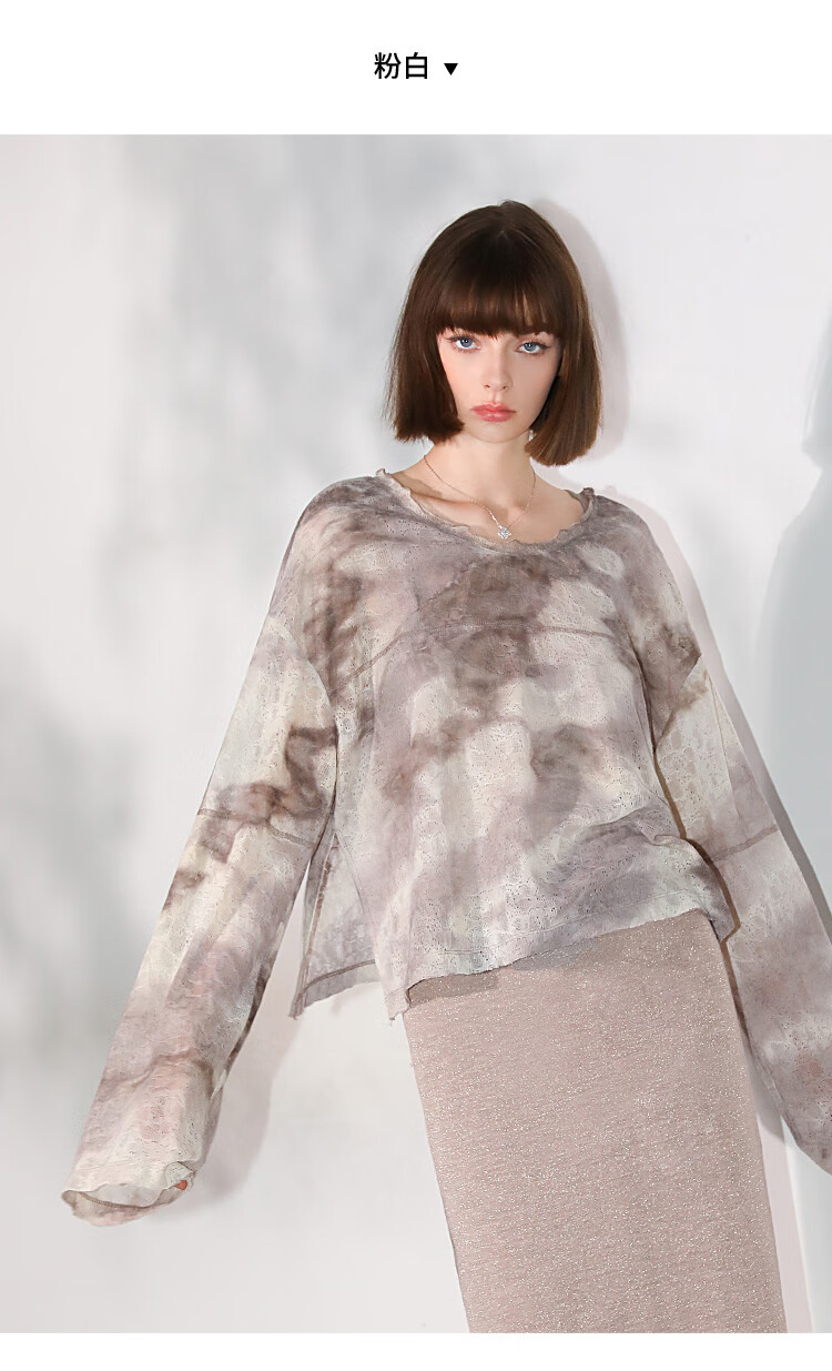 COCOBELLA手工扎染渐变镂空提花针织衫秋休闲套头罩衫TS7018