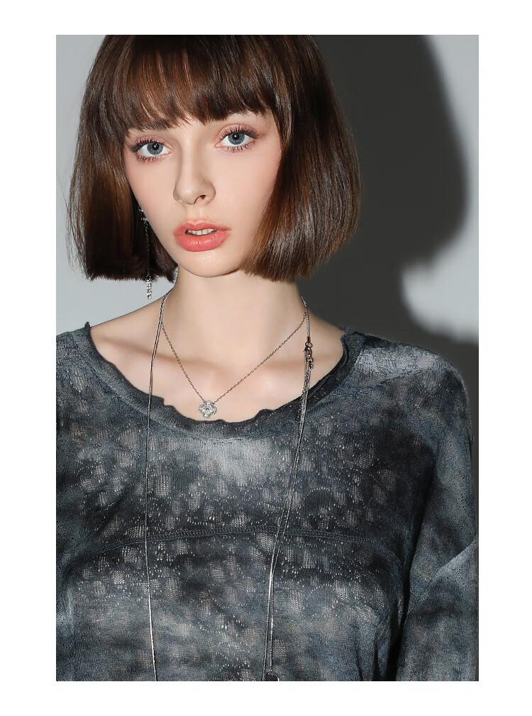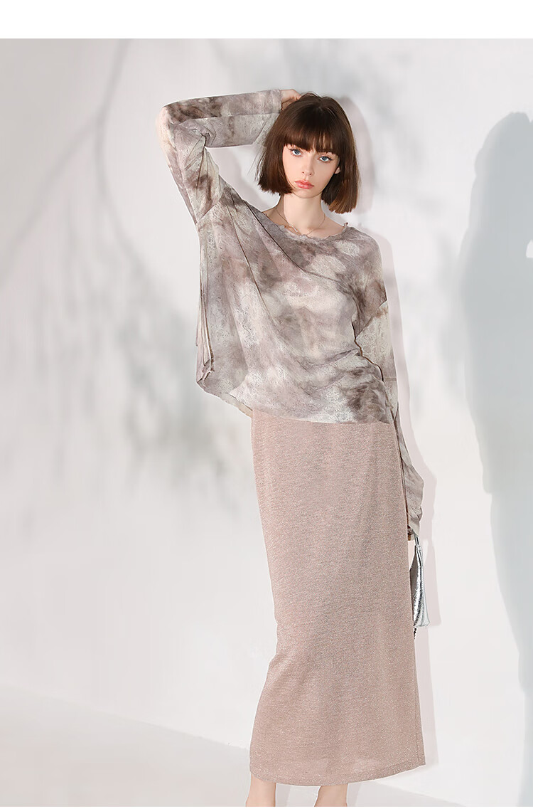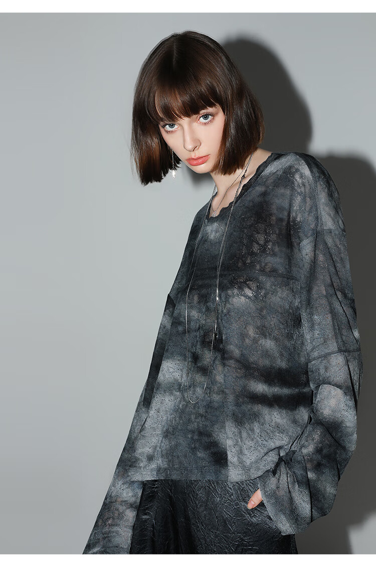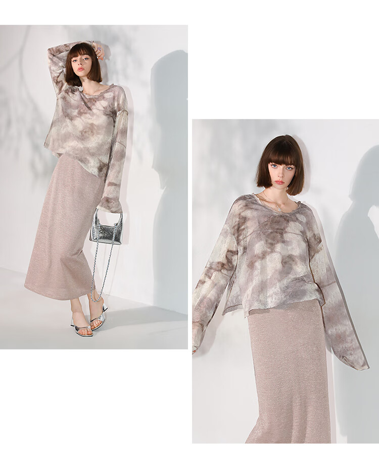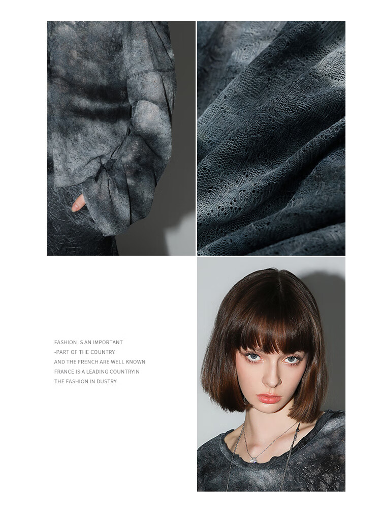 COCOBELLA手工扎染渐变镂空提花针织衫秋休闲套头罩衫TS7018
