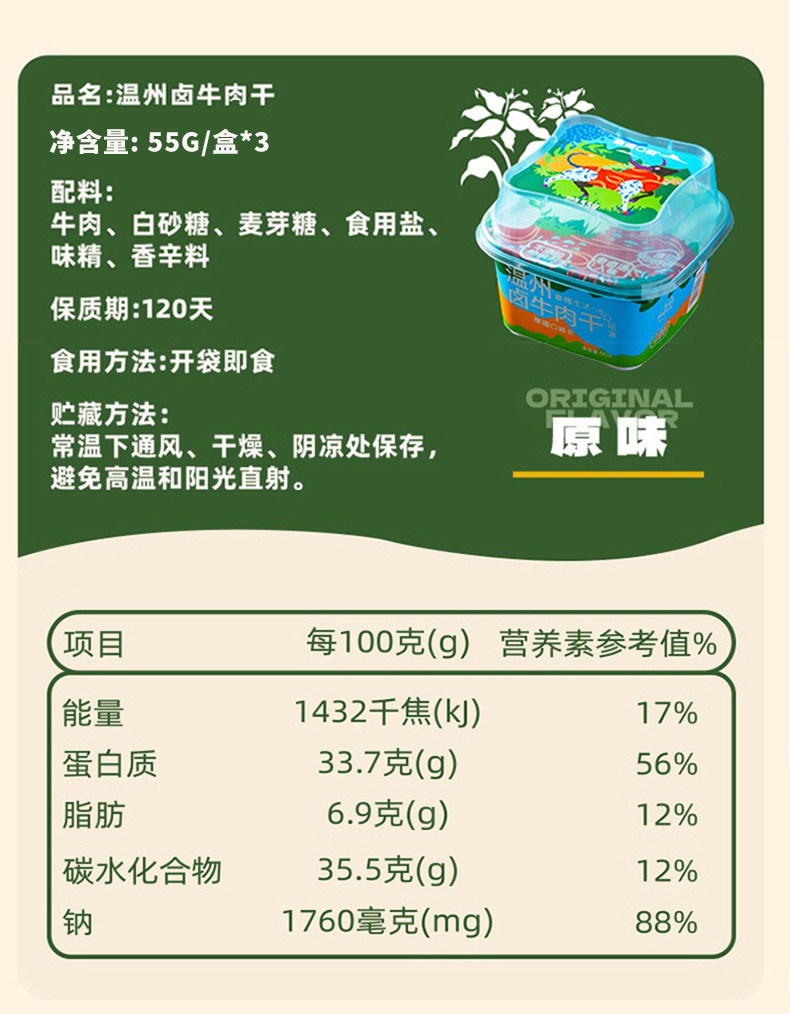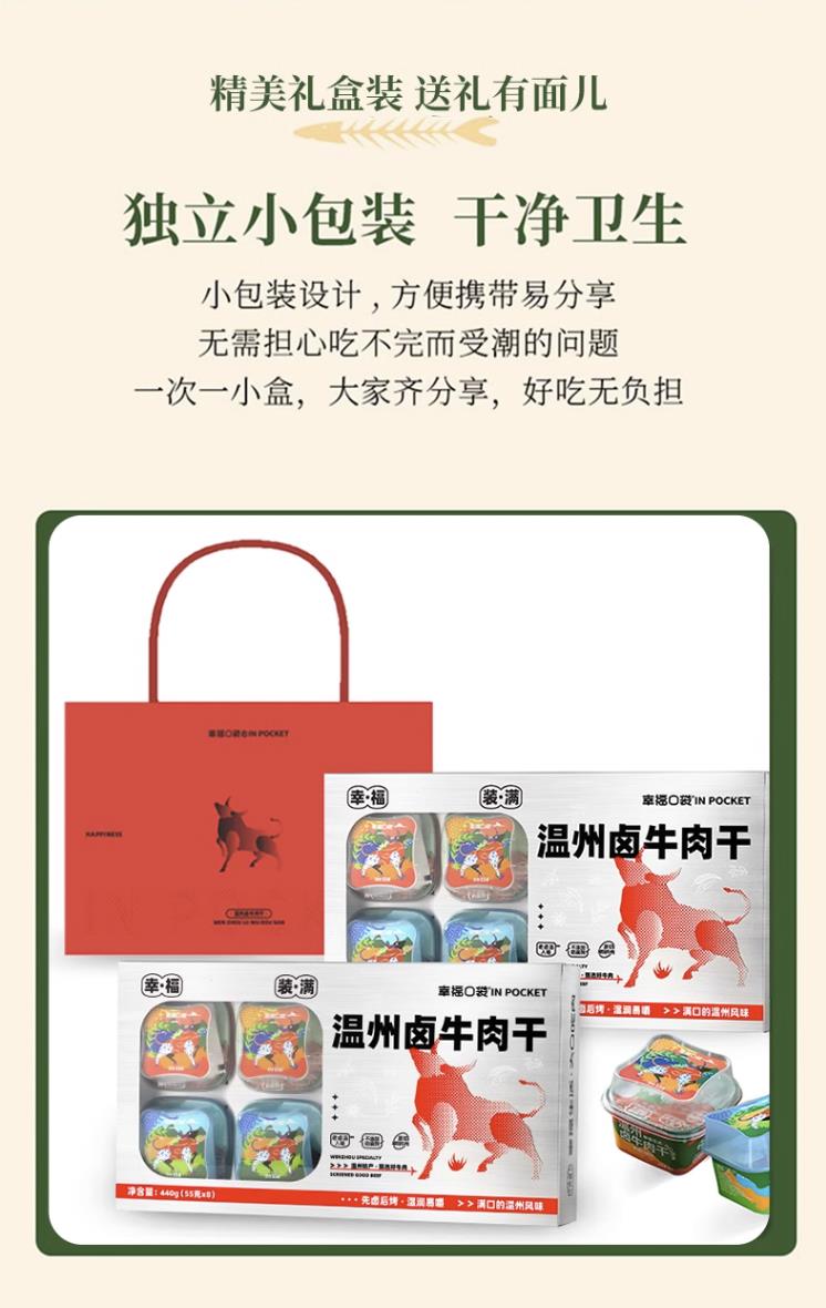 礼盒装发货时效3天【真牛肉越嚼越香】无添加防腐,建议冷藏 原切草饲牛肉 幸福口袋 温州卤牛肉干 ❌面粉大豆蛋白,❌香精色素防腐剂,真材实料 老卤汤入味 55g*3/盒