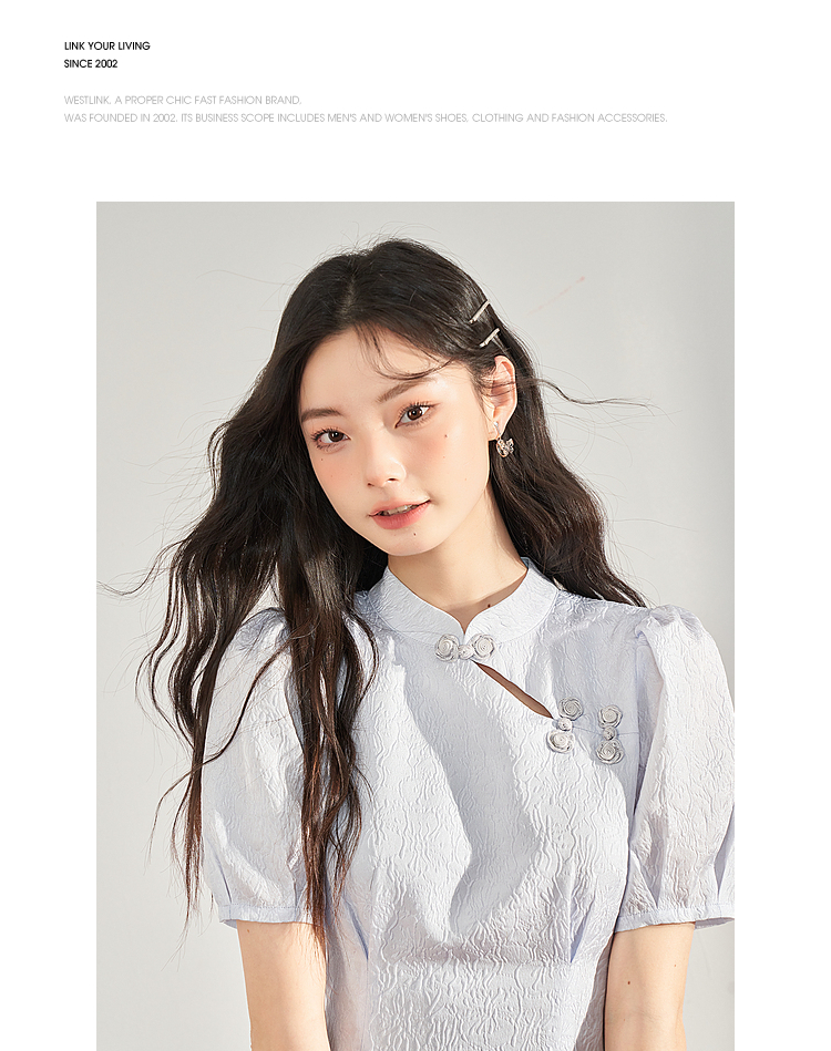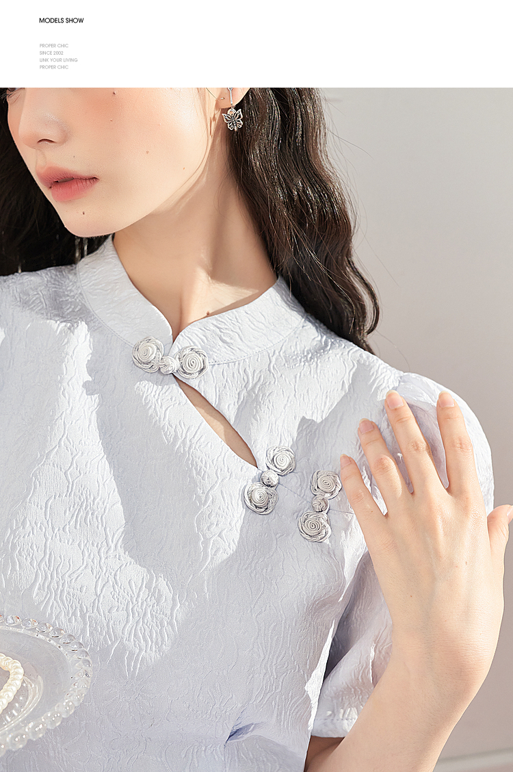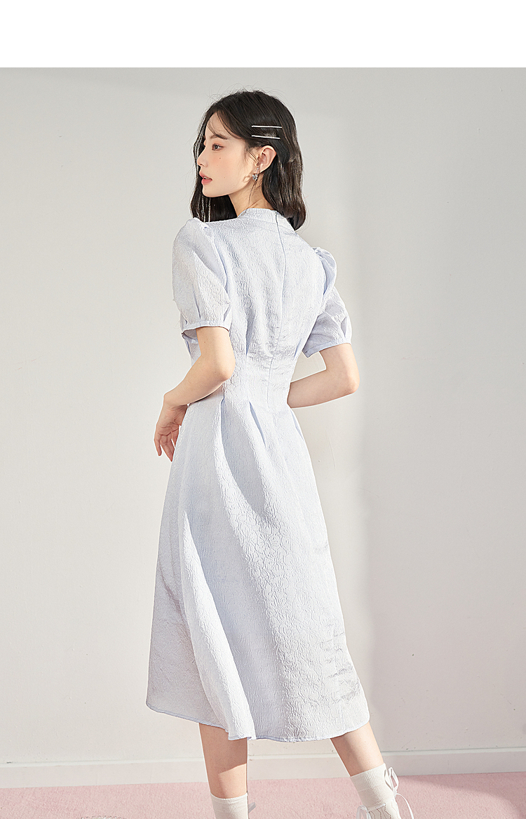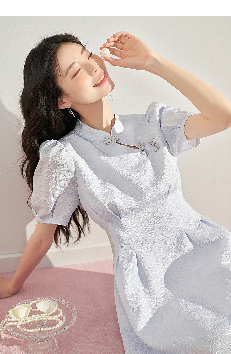 复古国风改良旗袍裙女夏季新中式长款浮雕泡泡袖连衣裙女V0930756
