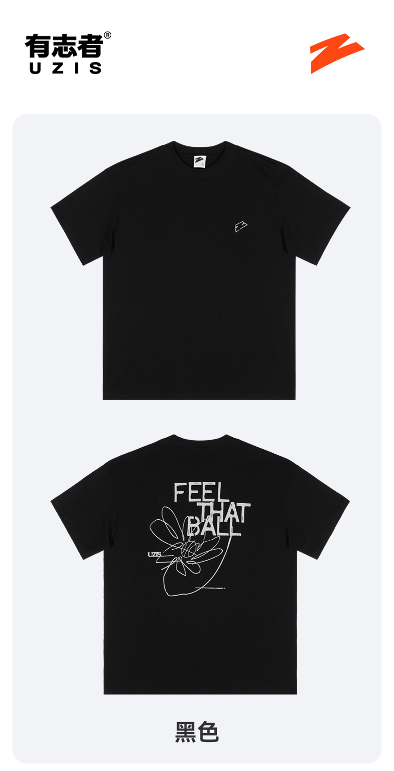 有志者UZIS 运动短袖男潮流休闲夏季宽松篮球跑步纯棉透气T恤笔触