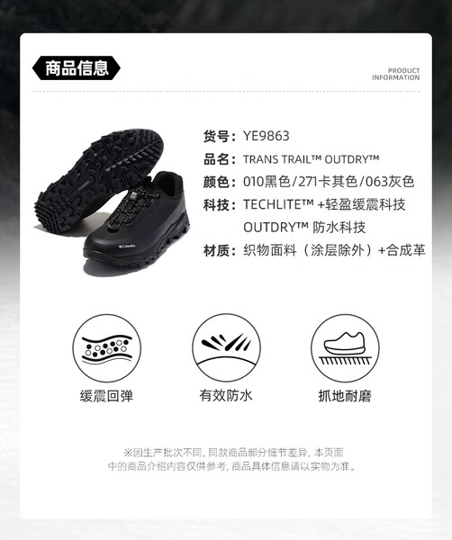 哥伦比亚男式防水徒步鞋YE9863