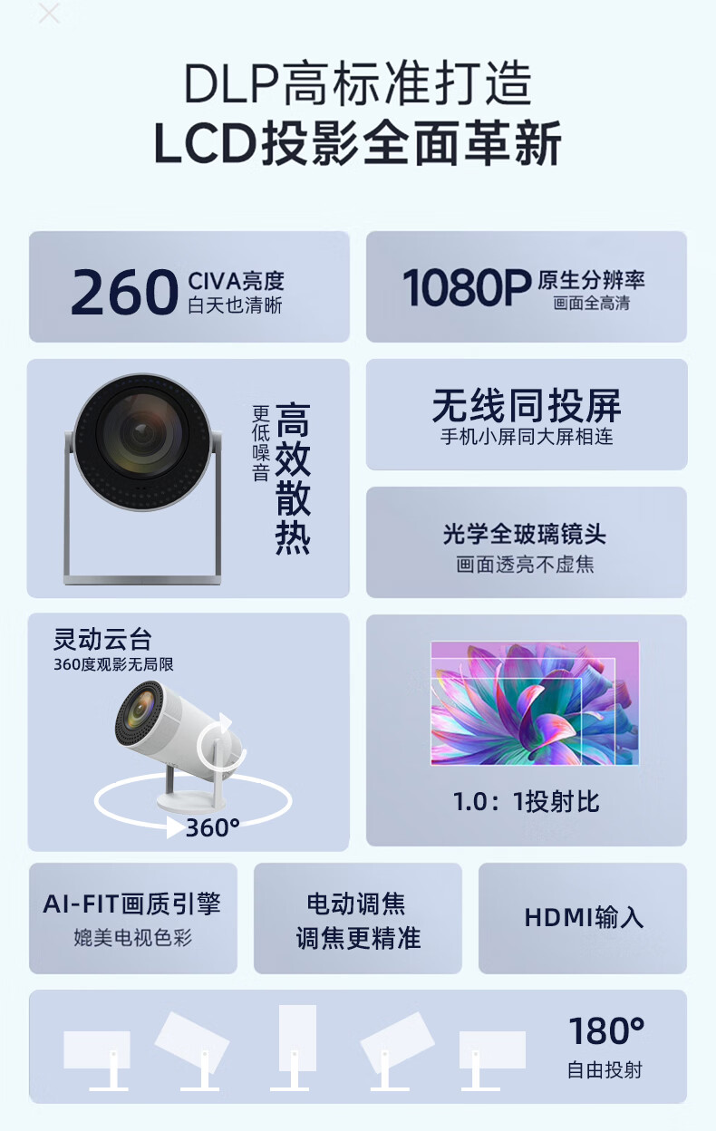 MINEJONI高清投自动对焦影仪新款家用墙投卧室家庭影院便携电视小型宿舍学生公寓 T22投影仪白色