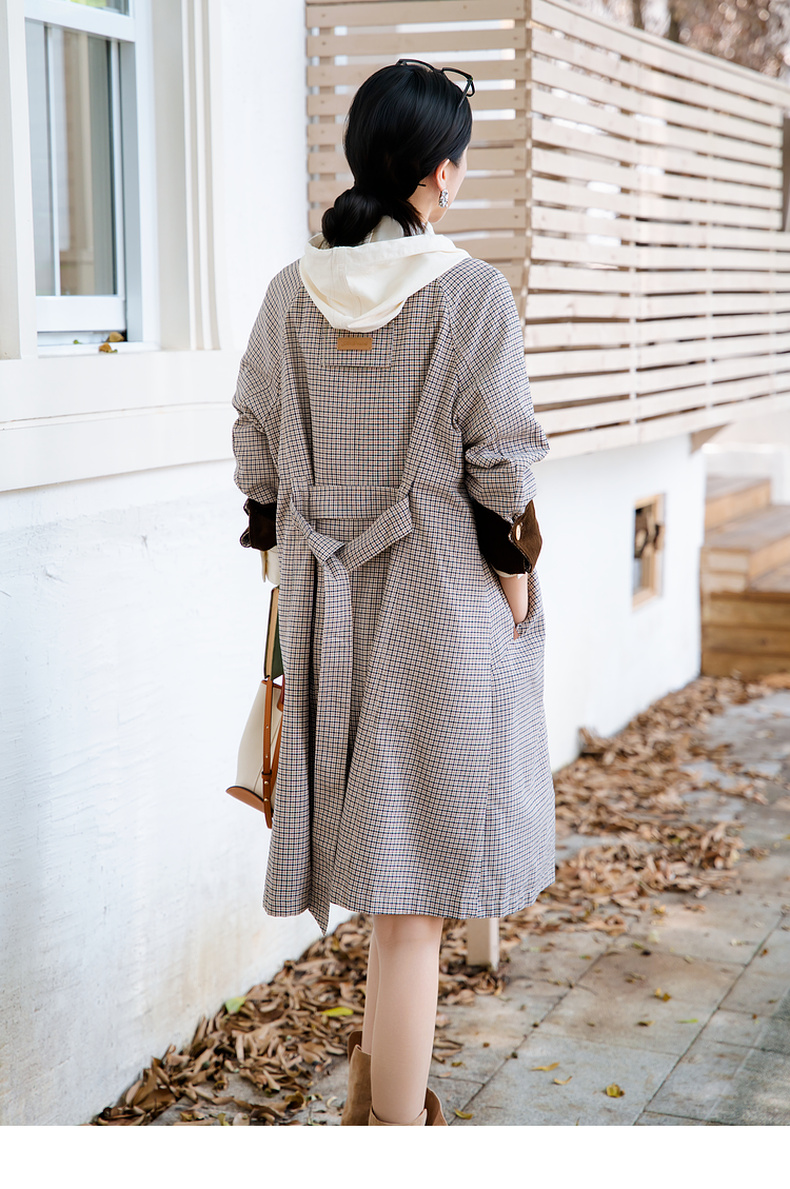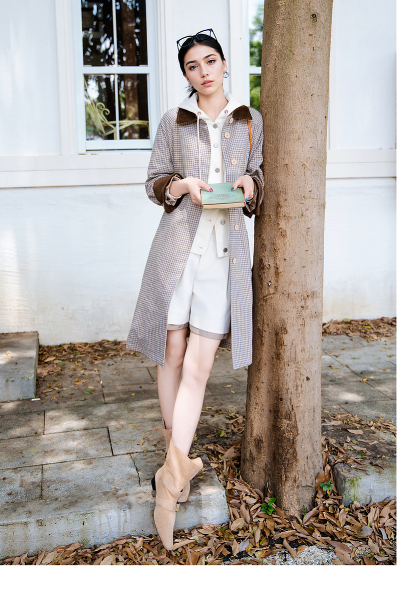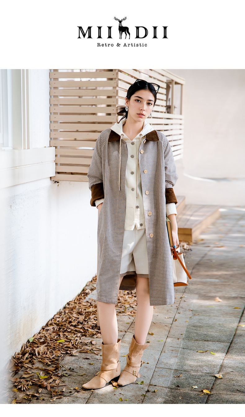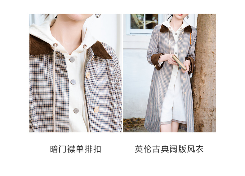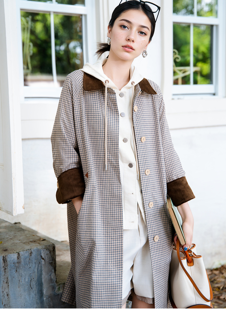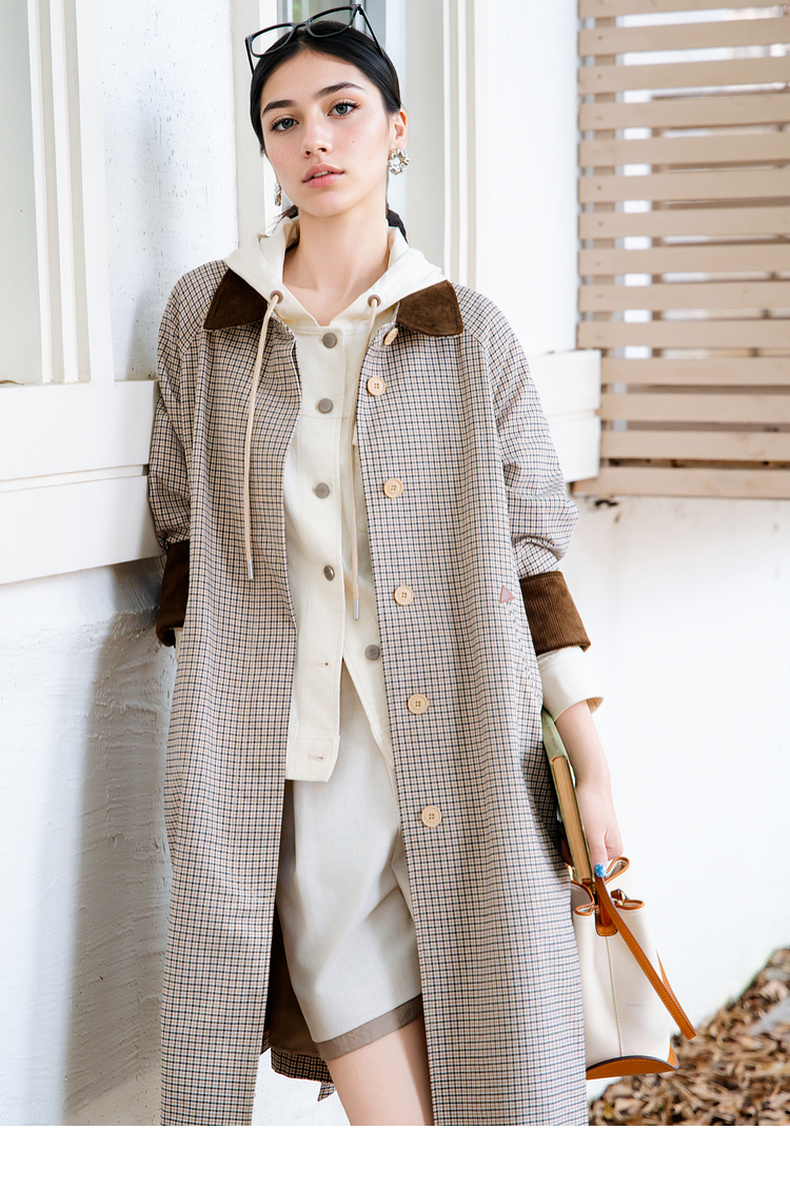谜底翻领风衣女士2025秋季新款通勤风领口拼接长款外套25CME5008