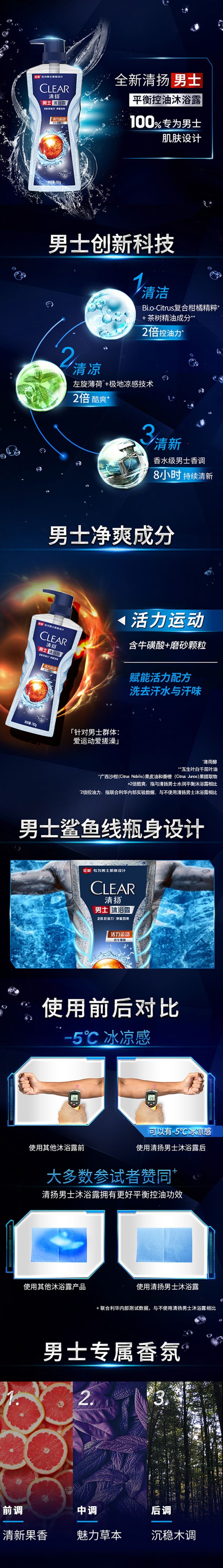 清扬男士头皮劲活专研去屑洗发露沐浴露组合