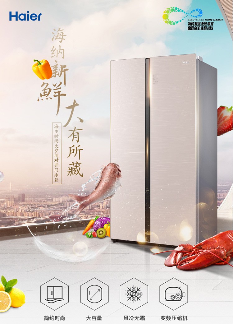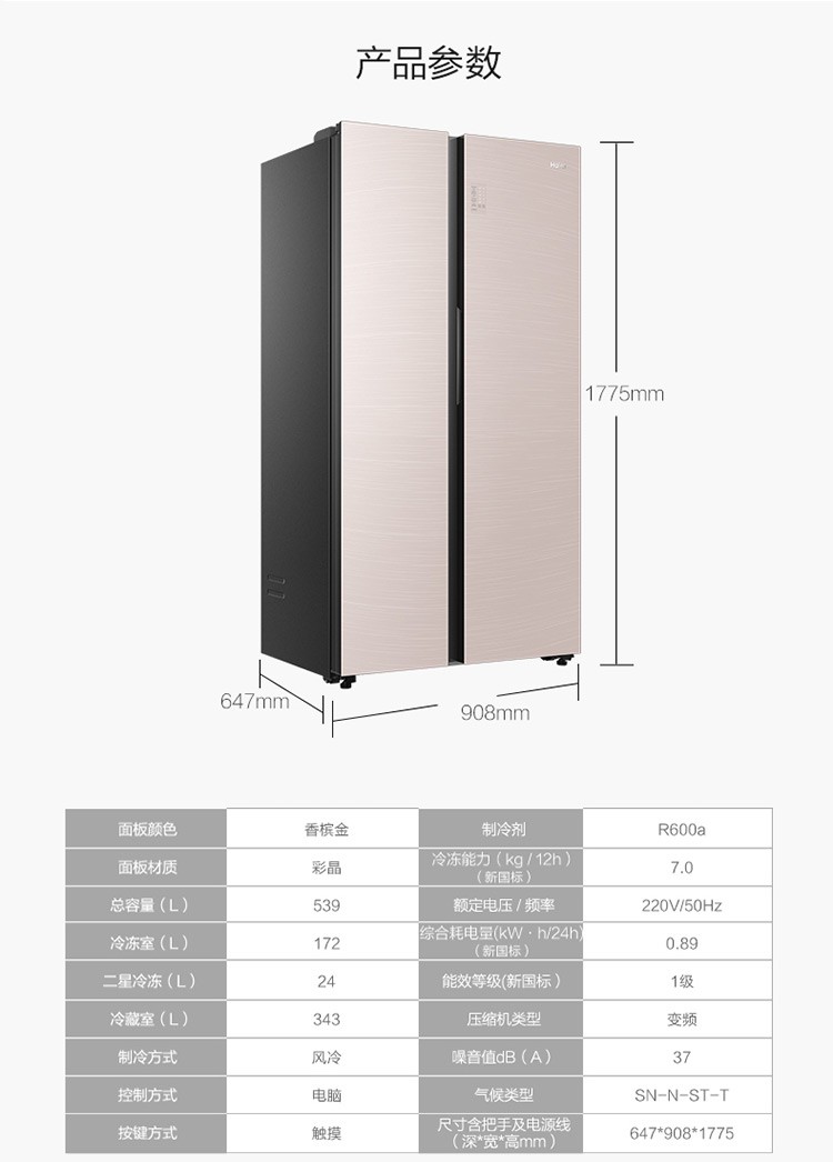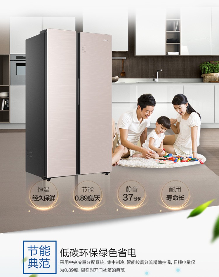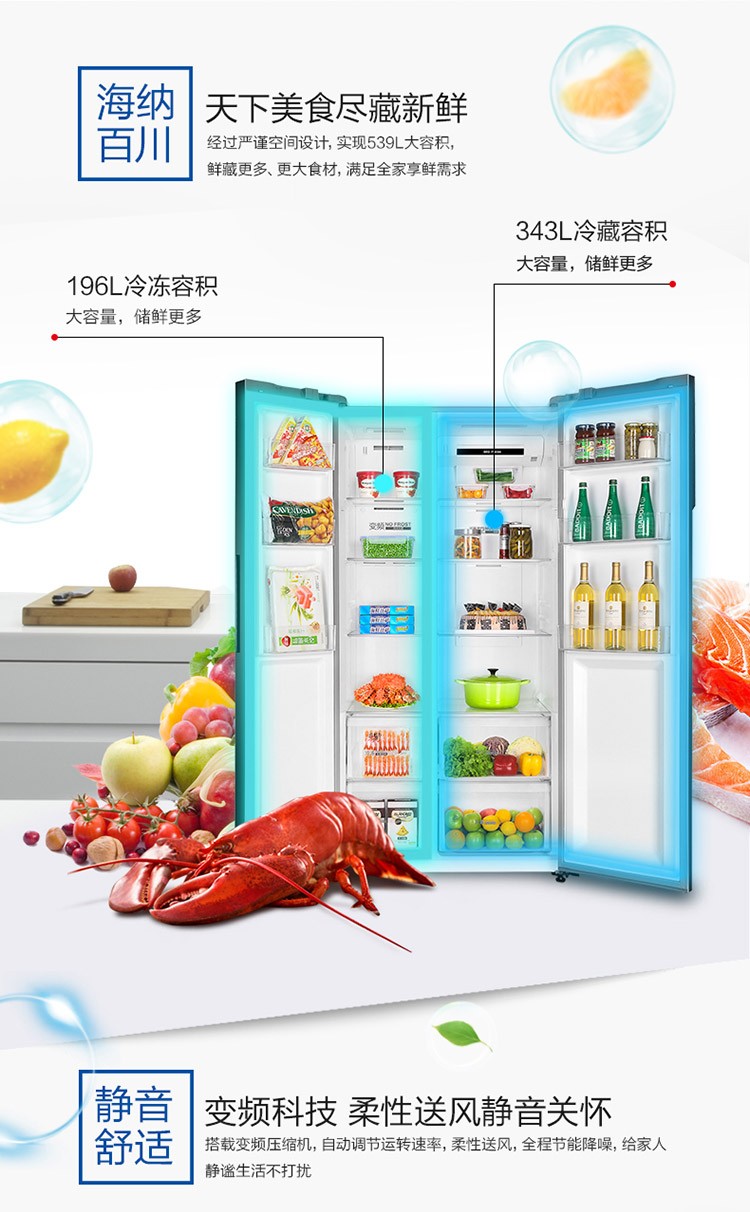 海尔539升风冷变频对开门冰箱BCD-539WGHSSEDY1