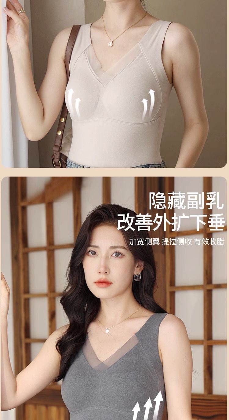 石墨烯自发热保暖背心蕾丝免穿文胸秋冬加厚女士一体打底内衣上衣