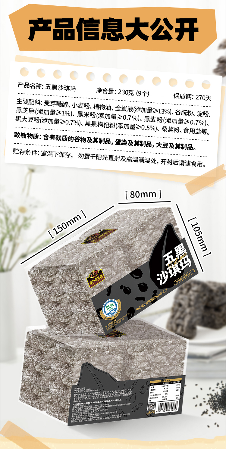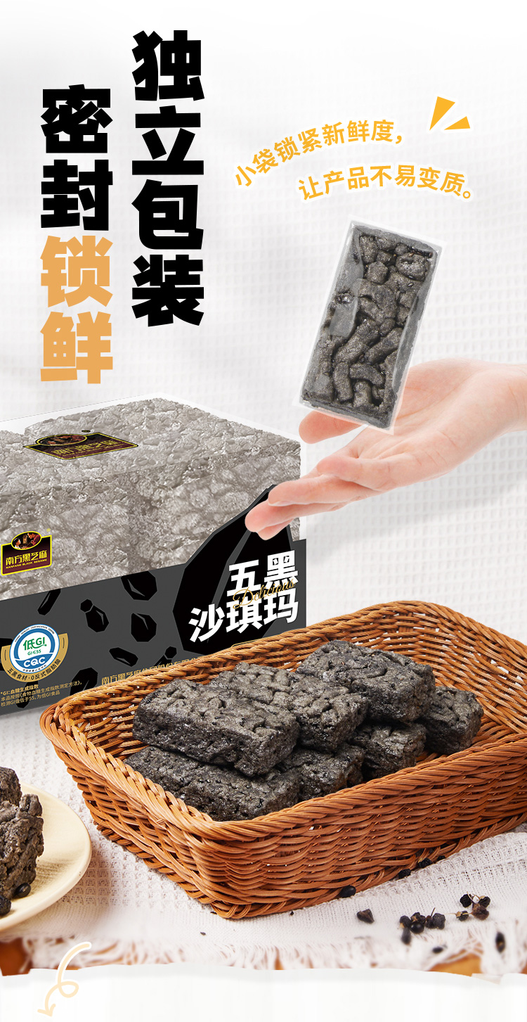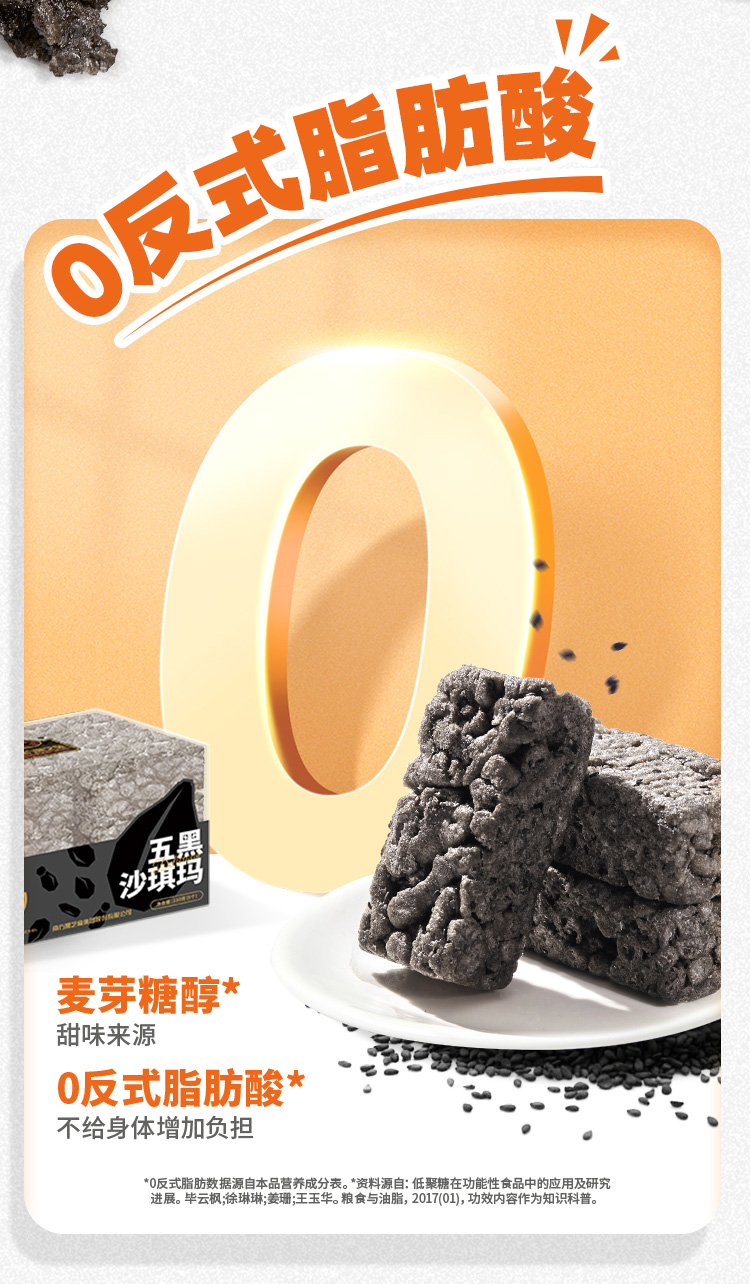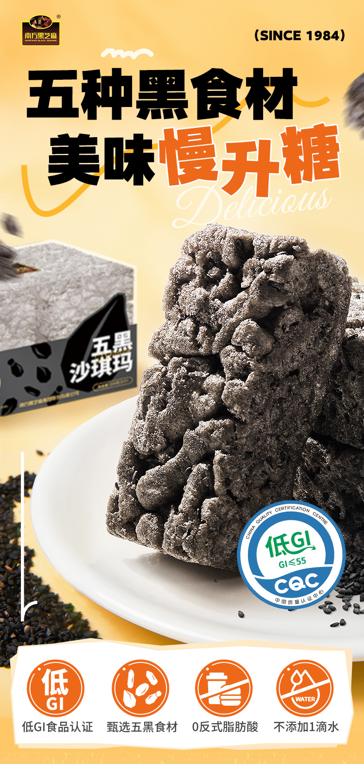 南方黑芝麻五黑沙琪玛230g低GI慢升糖配方传统糕点心早餐休闲小吃零食
