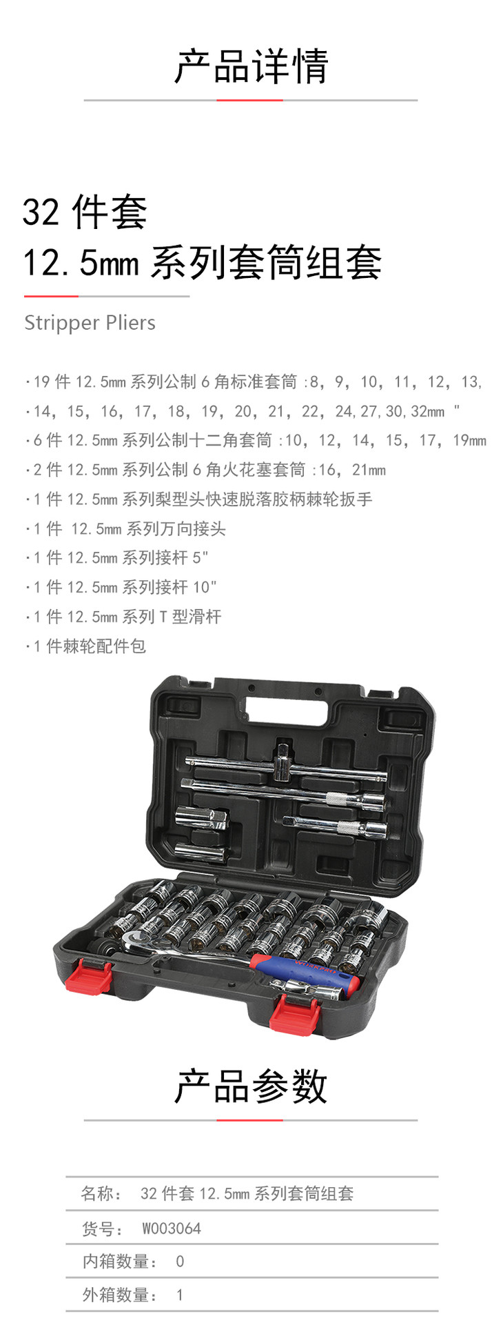 w003064万克宝32件套12.5mm系列套筒组套