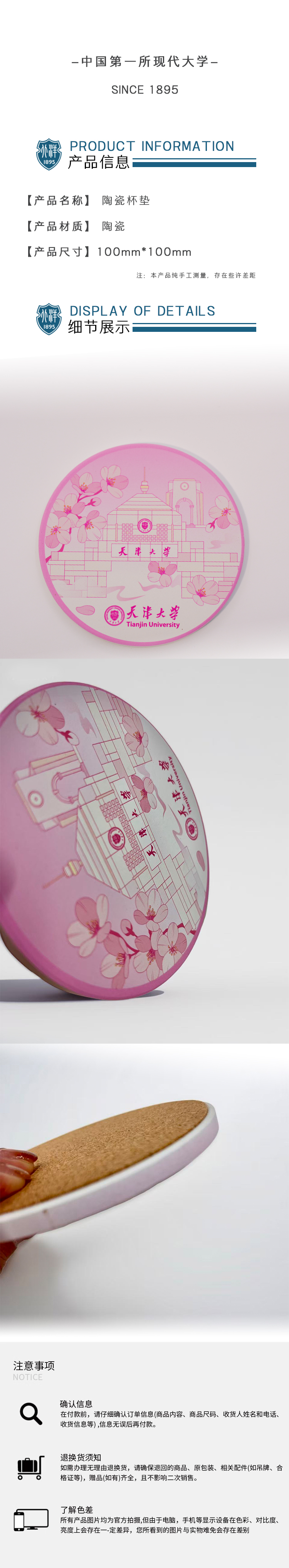 天津大学文创陶瓷杯垫