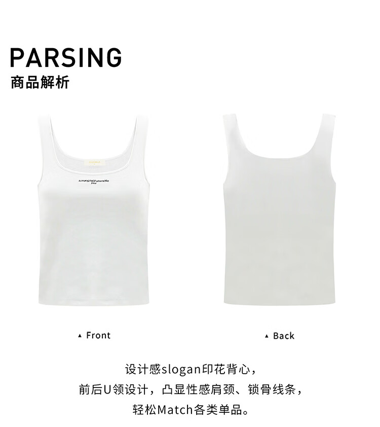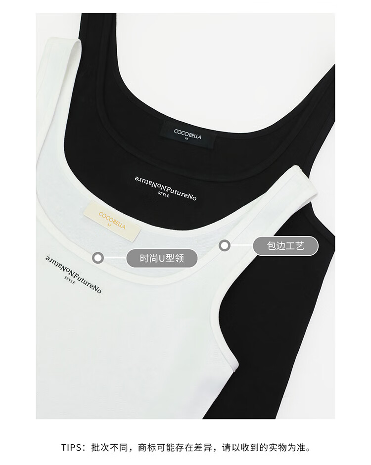 COCOBELLA前后U领字母印花背心女可外穿混搭打底小吊带VT601