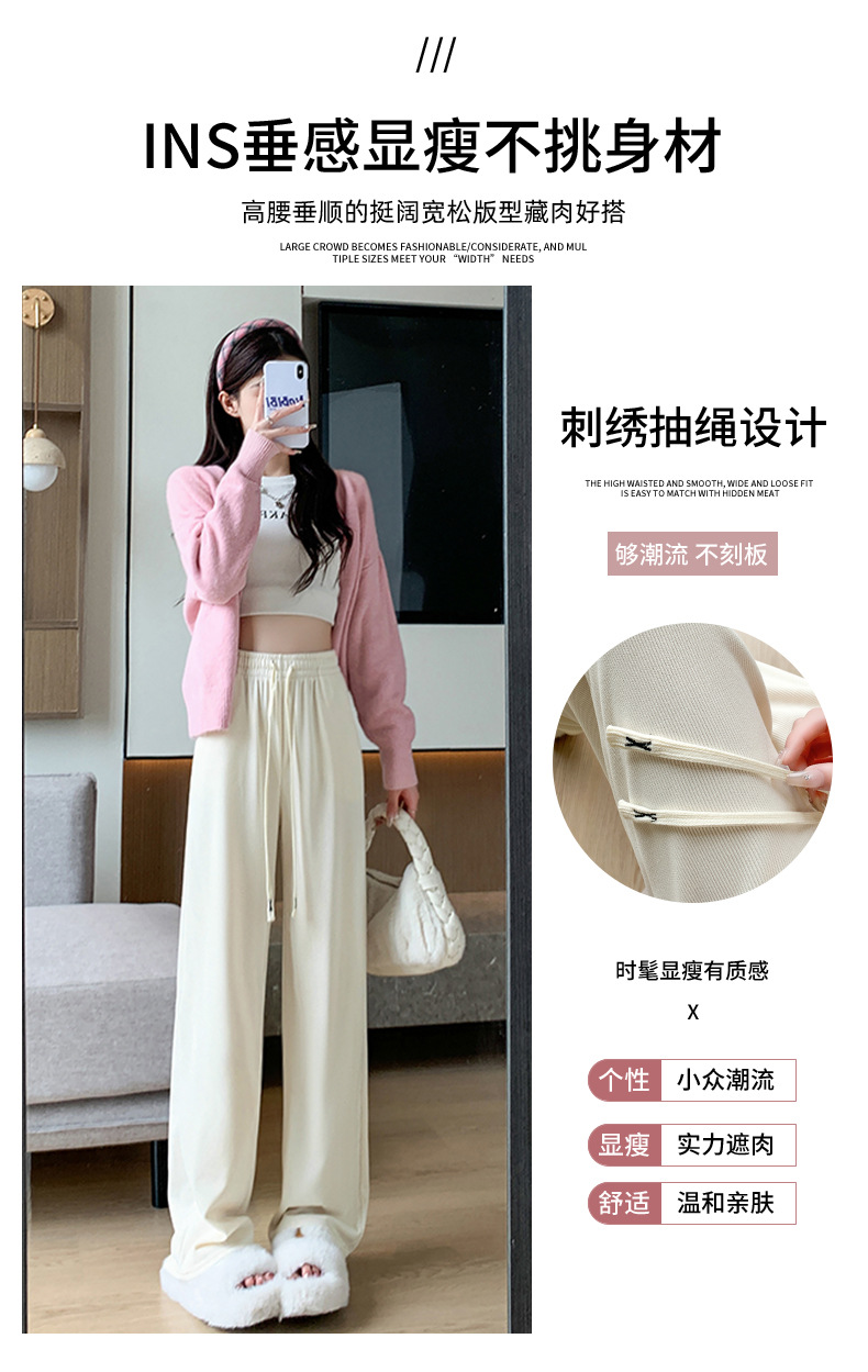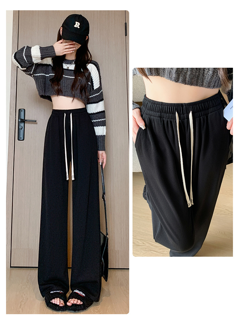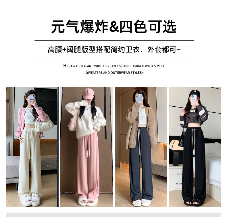 【春秋必备!】黑色运动裤,高腰垂感,直筒宽松。穿出卷起的裤腿,慵懒时尚,独具魅力!