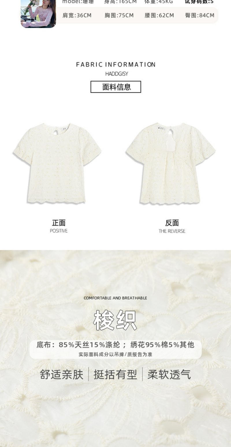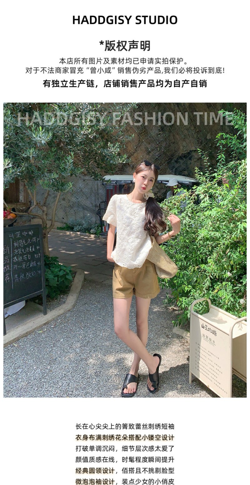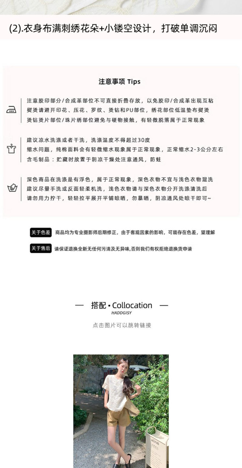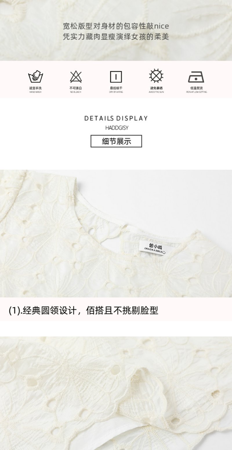 <曾小咸推荐>【温柔公式】白色蕾丝刺绣短袖T恤