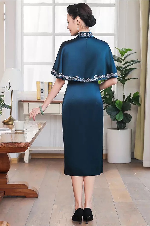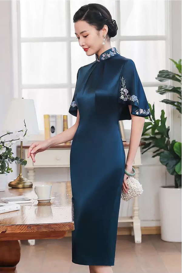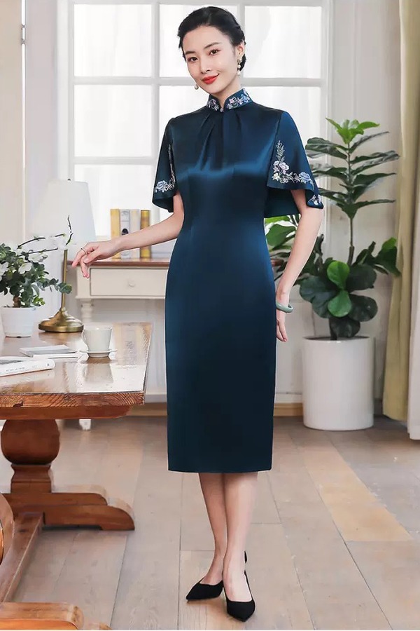 首玺 缎面刺绣旗袍式连衣裙 11963