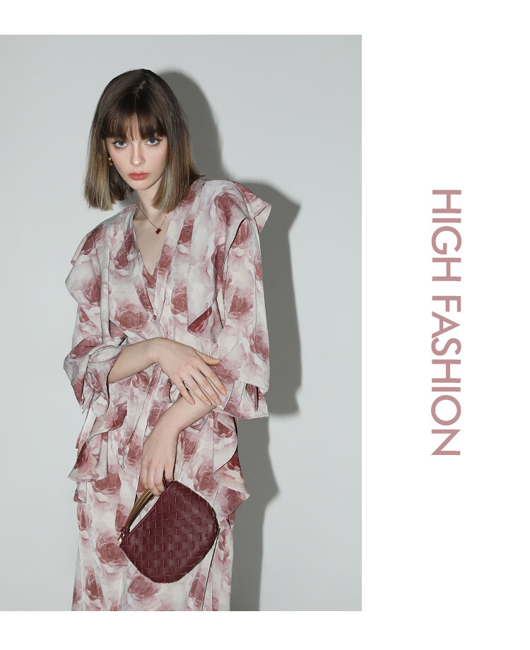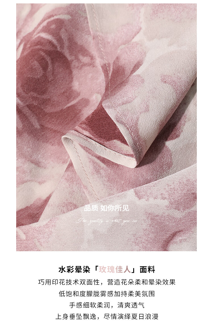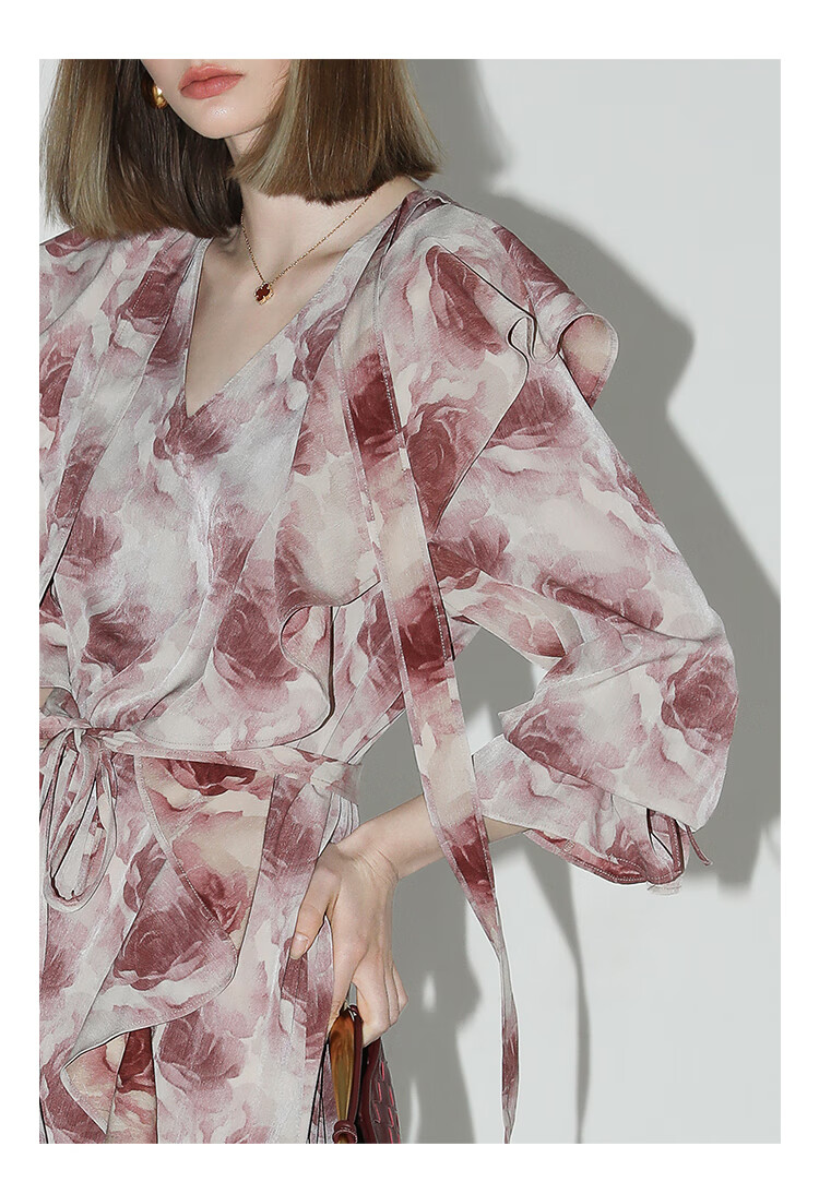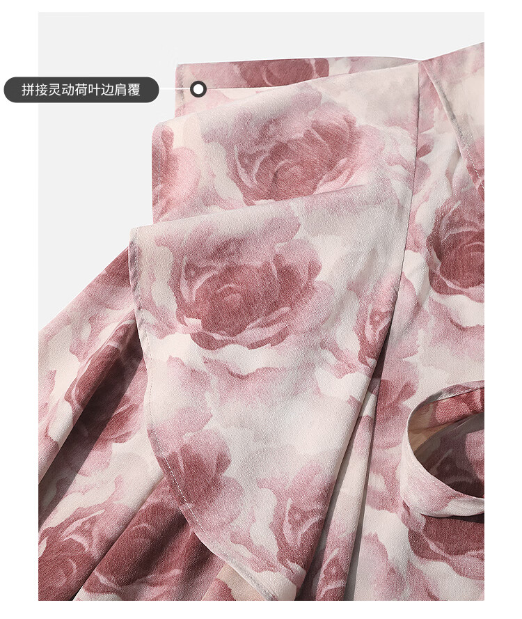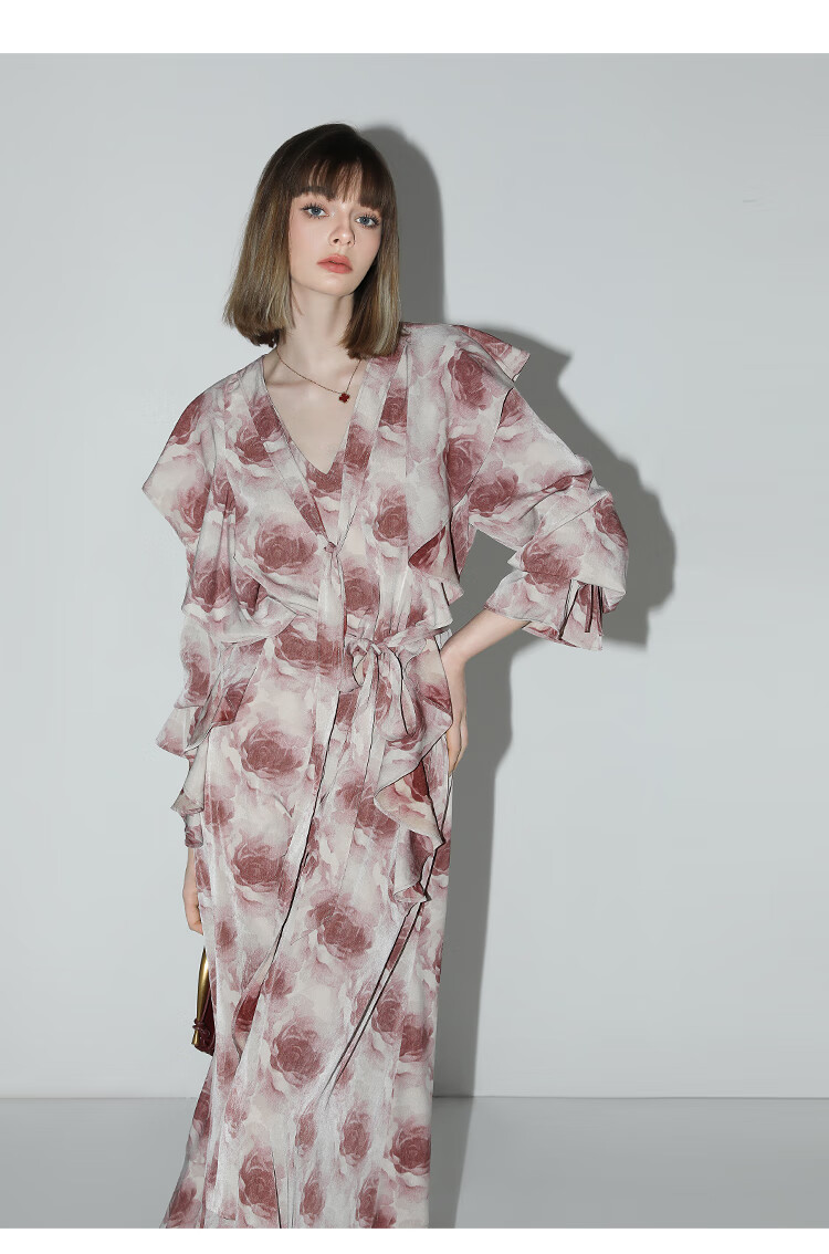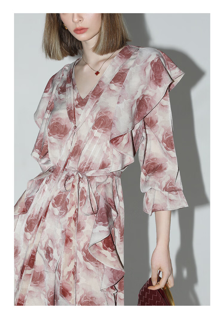 【限时秒杀】COCOBELLA[4米+用料]晕染玫瑰荷叶边大摆OL飘带连衣裙FR3037