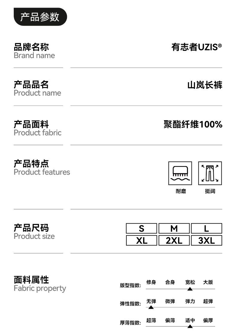 有志者UZIS宽松透气休闲运动长裤男士耐磨微喇叭户外秋季新款山岚
