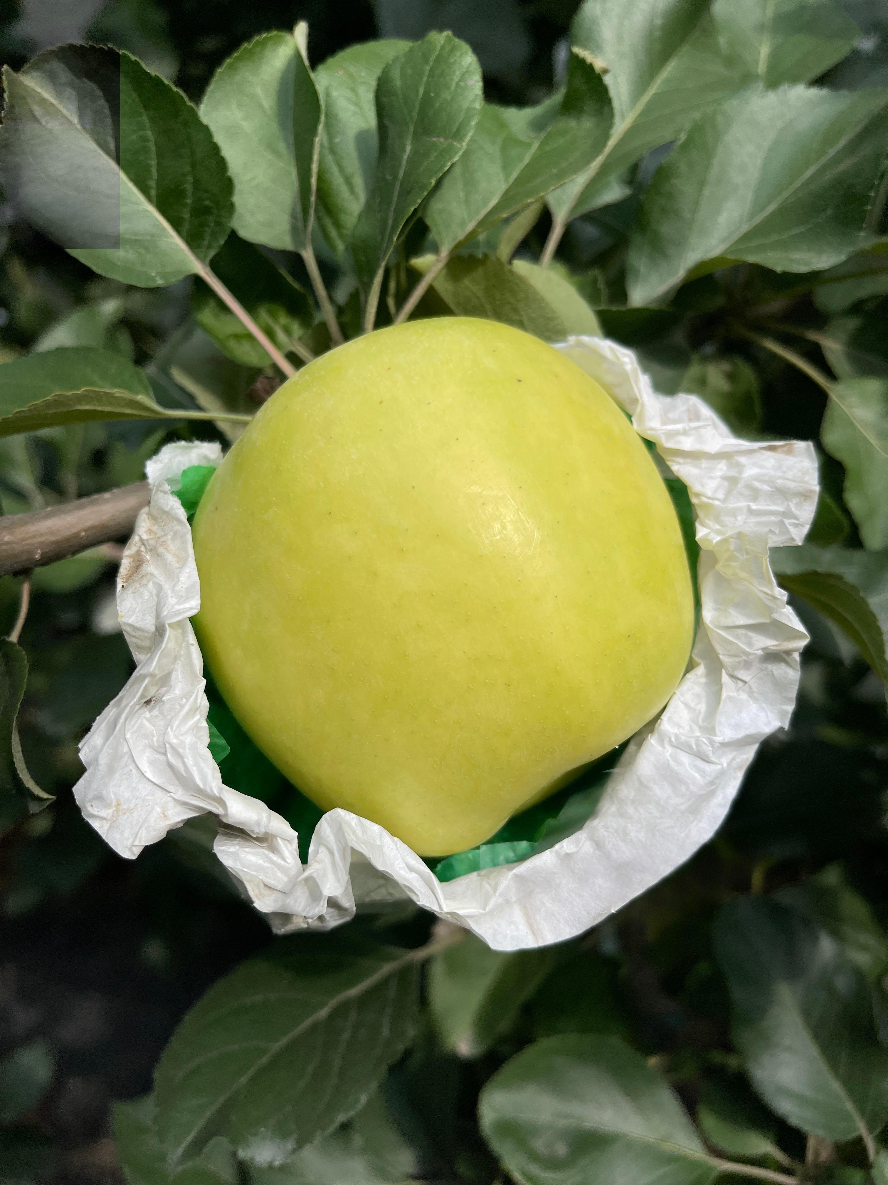 瑞雪苹果必须套专用套袋,才能保证果面干净,保证瑞雪的黄绿色本性,保证果香浓郁,保证口感惊艳!