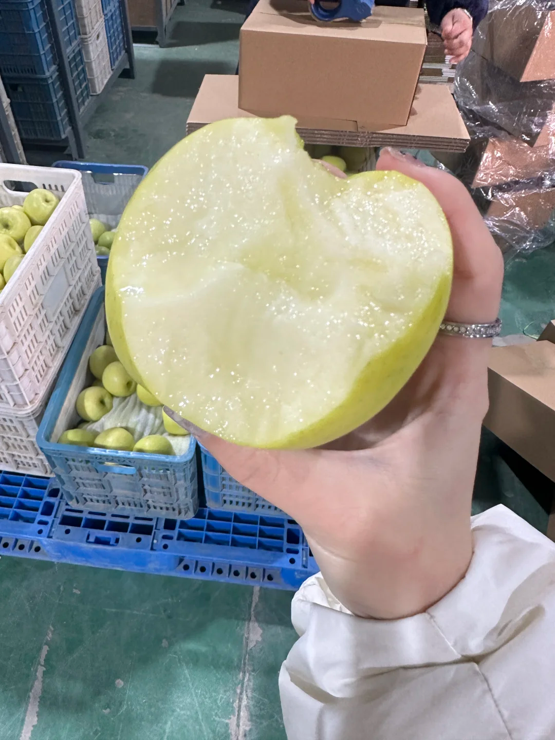 苹果其黄绿色果皮宛如初雪覆盖,果肉脆嫩爆汁,甜度高达20°,更自带独特“百花香”,一口咬下仿佛置身春日花园。