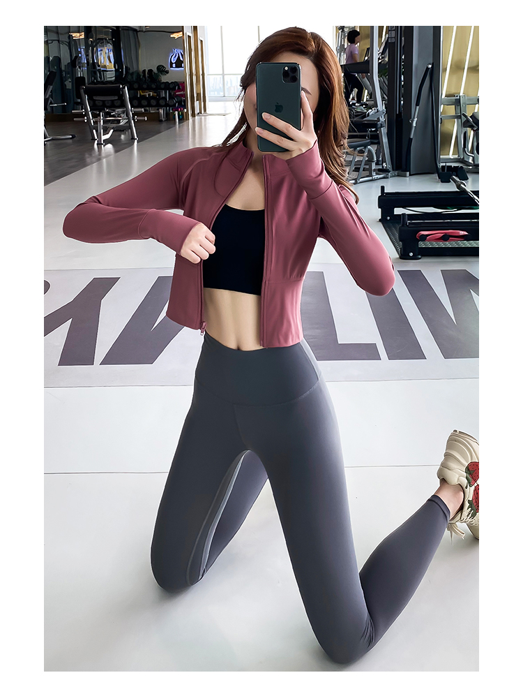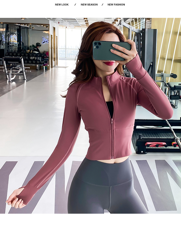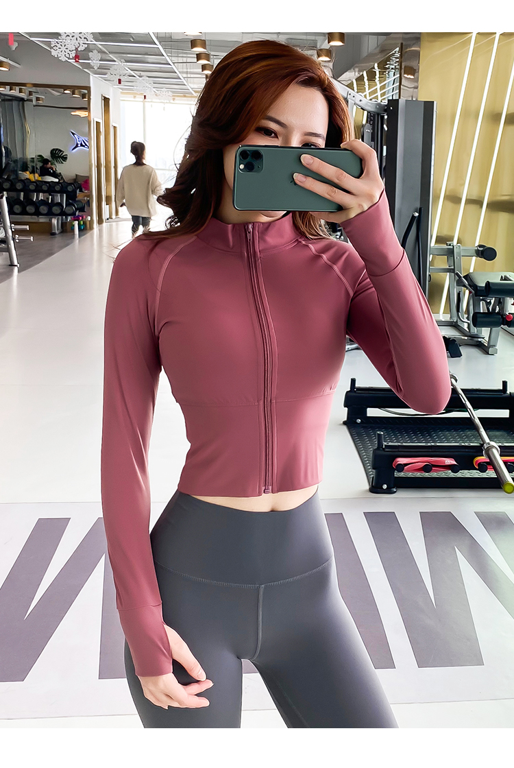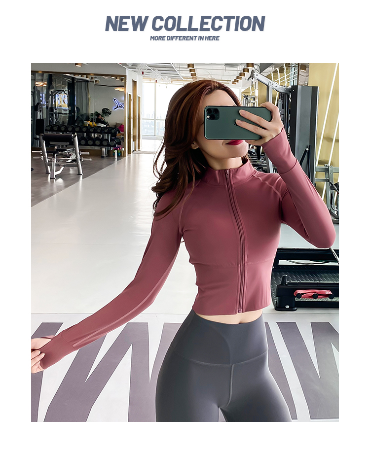 beemen修身显瘦运动跑步上衣女冬季拉链健身外套速干训练长袖网红瑜伽服