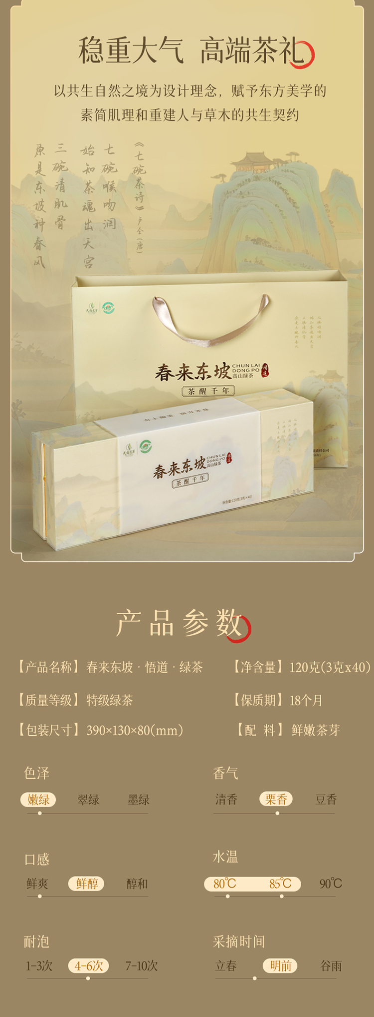 龙芽大师春来东坡纯料高山绿茶高端送礼礼盒120g