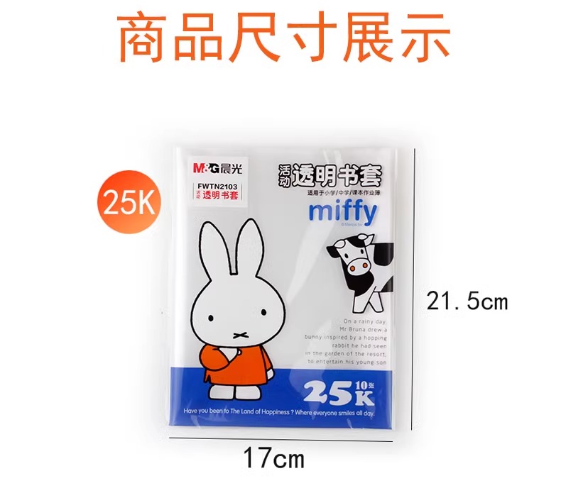晨光16K/25K 米菲透明包书皮小学生用防水加厚包书皮 10张/包 1包装
