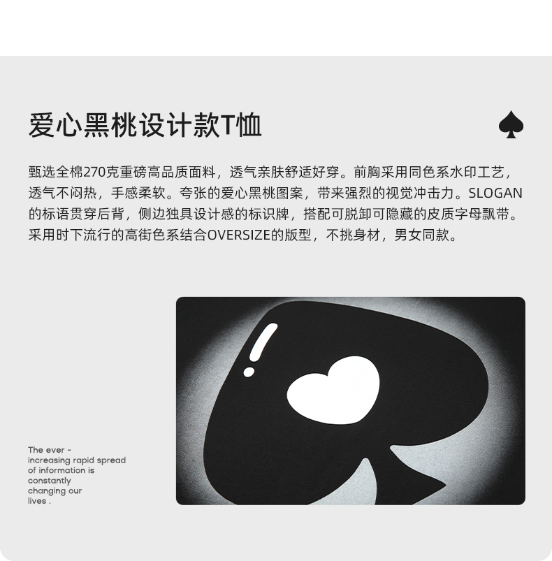 YKYB 23SS黑桃印花宽松廓形短袖T恤