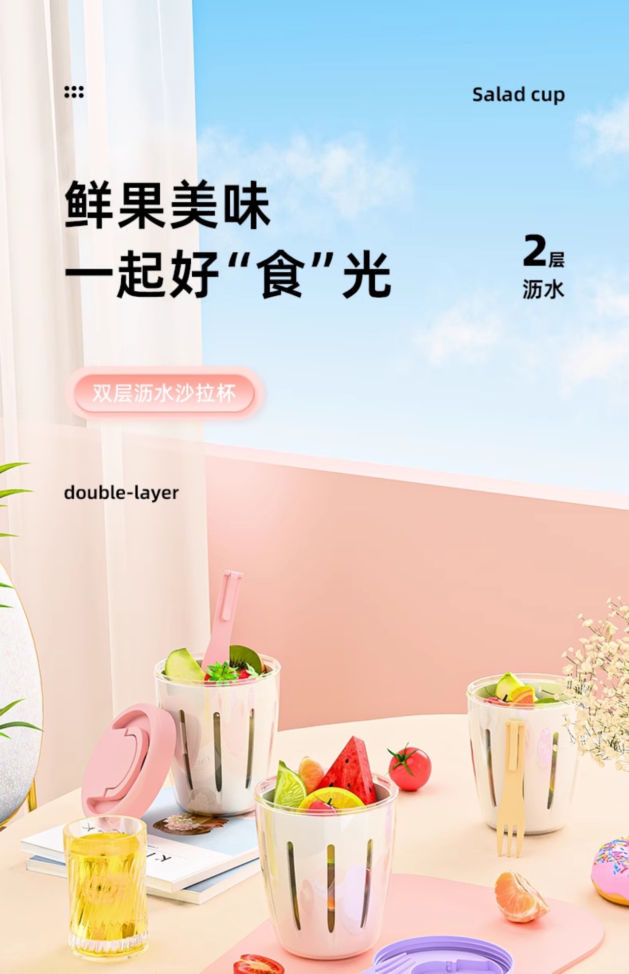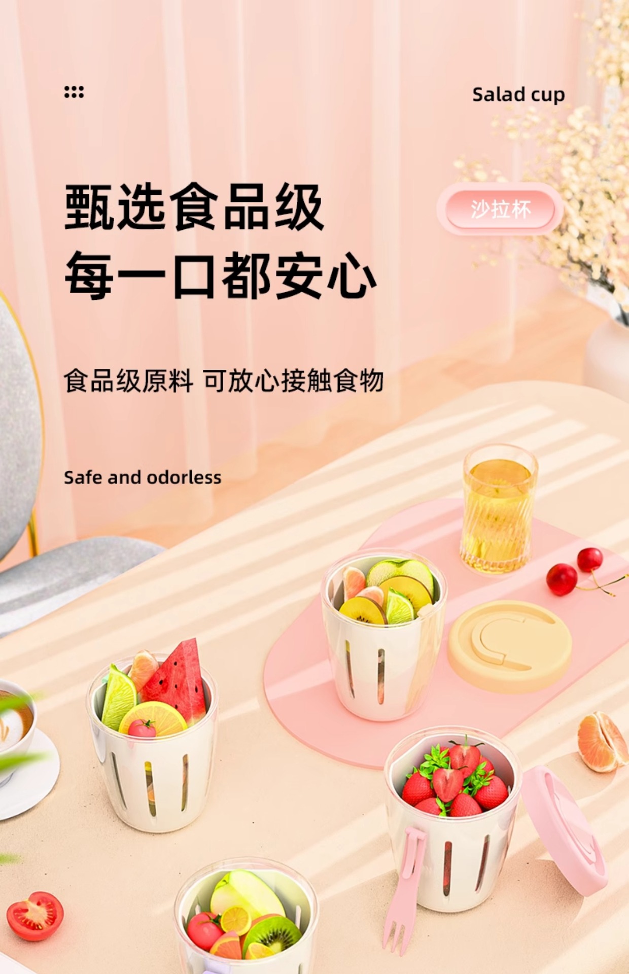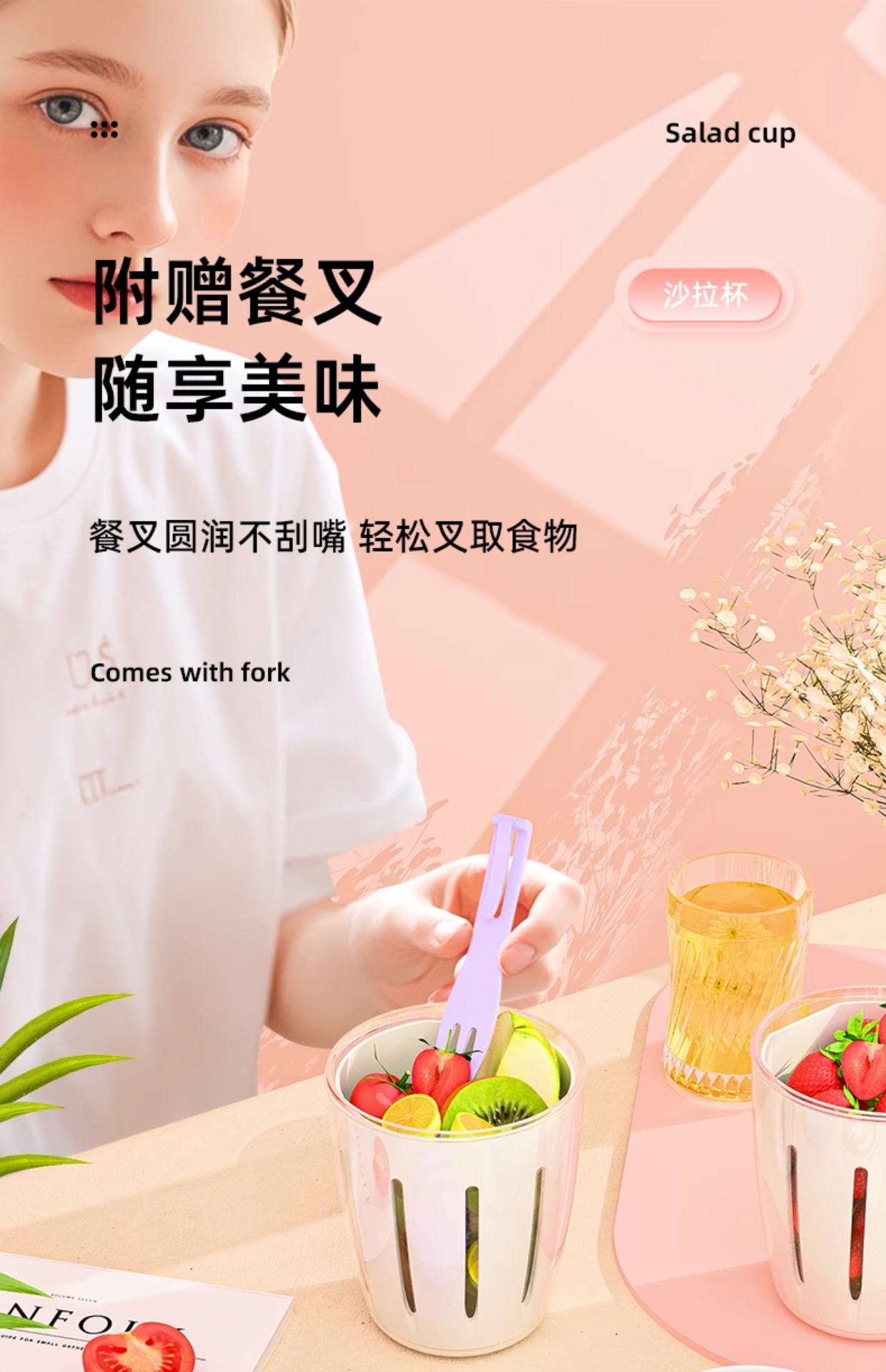 【9.9元抢❗️便携可沥水水果杯】鲜果美味一起好“食”光,下单送同款水果叉,ins风水果杯,早餐沙拉杯外带野餐带叉子,便携带盖双层沥水杯L