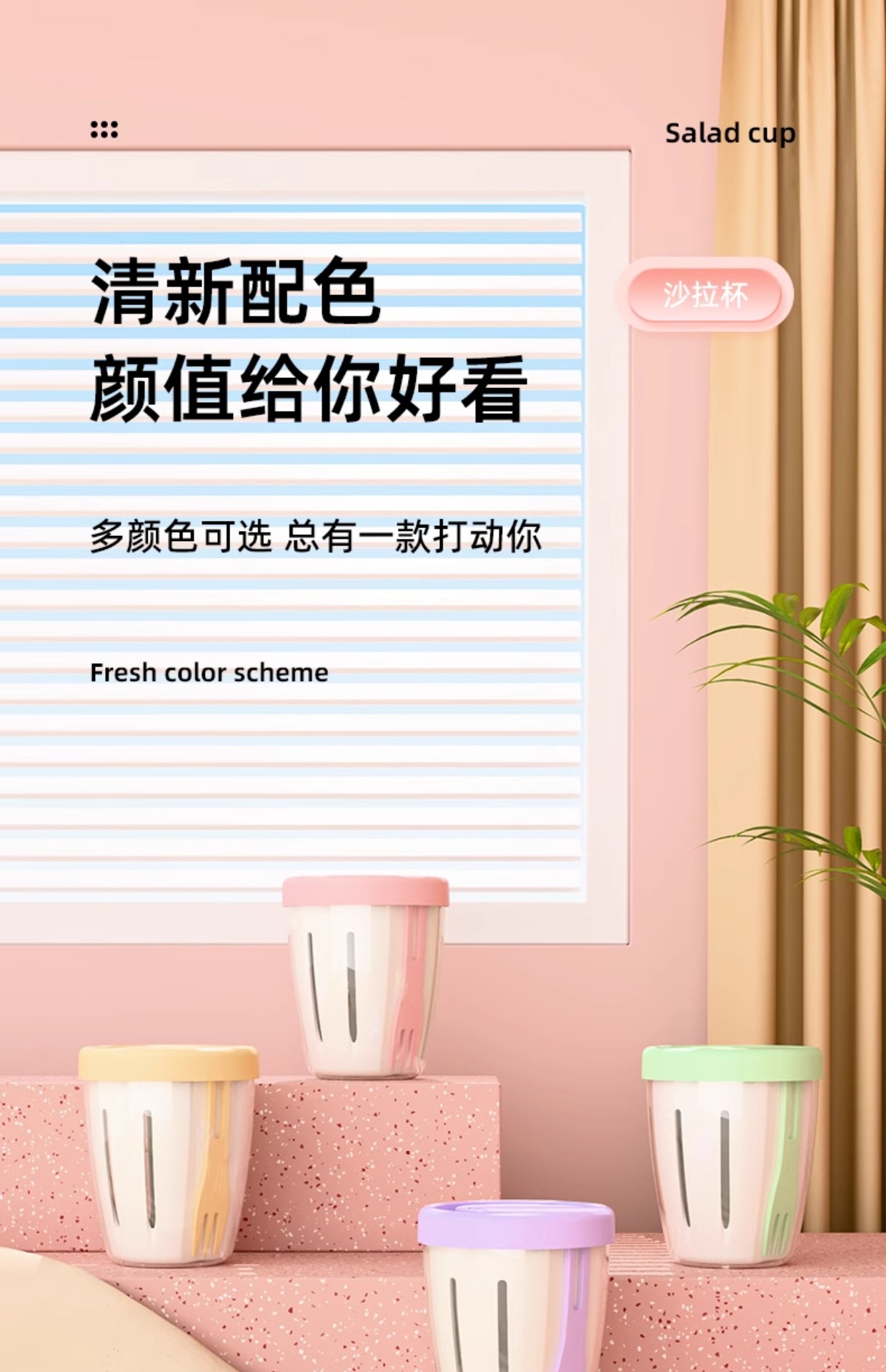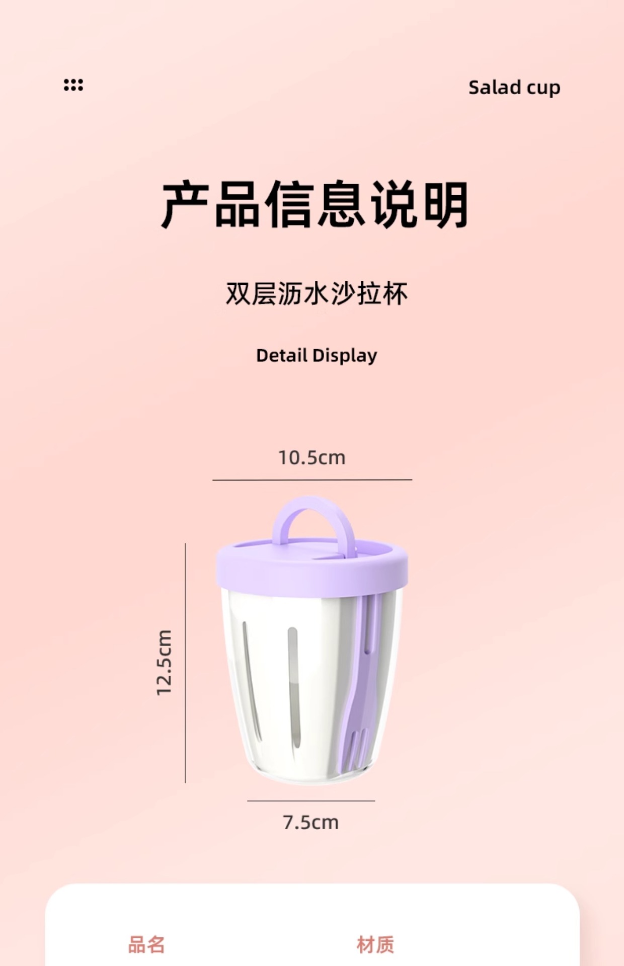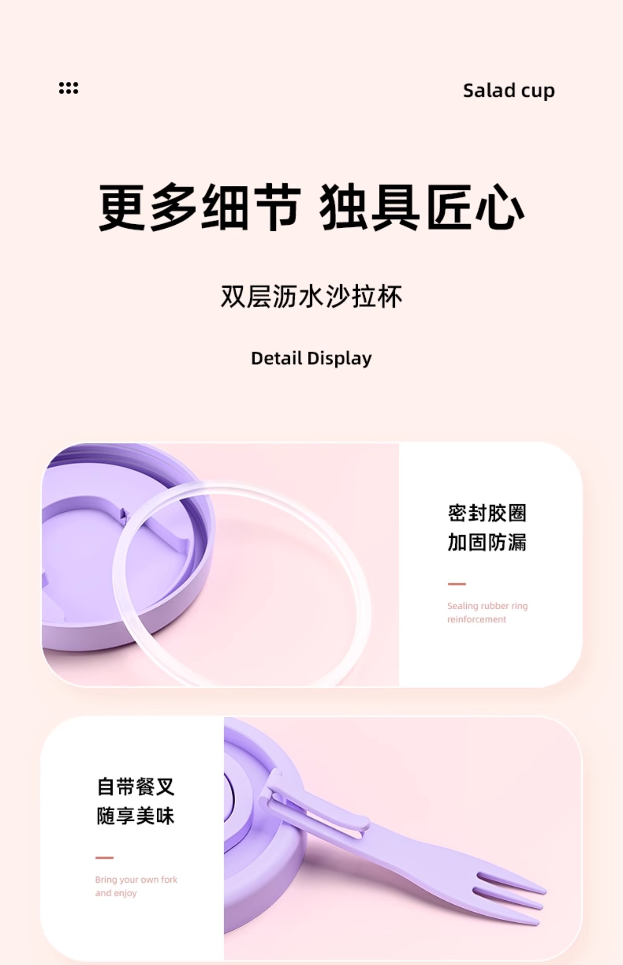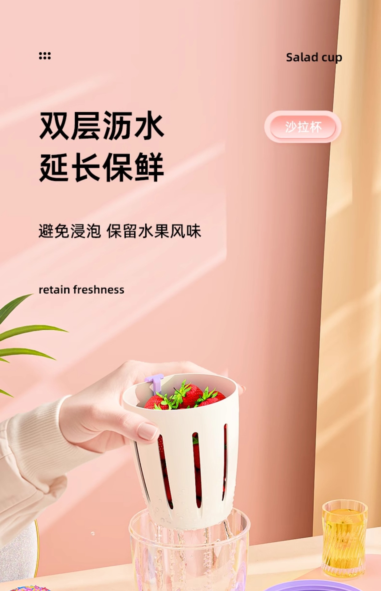 【9.9元抢❗️便携可沥水水果杯】鲜果美味一起好“食”光,下单送同款水果叉,ins风水果杯,早餐沙拉杯外带野餐带叉子,便携带盖双层沥水杯L