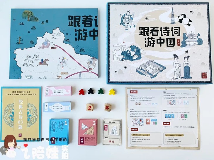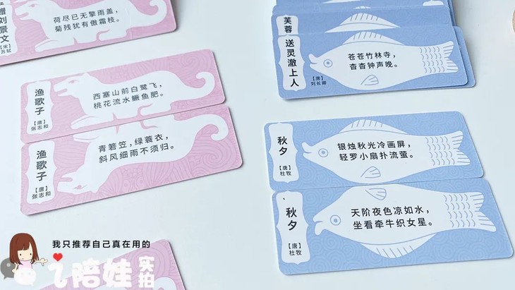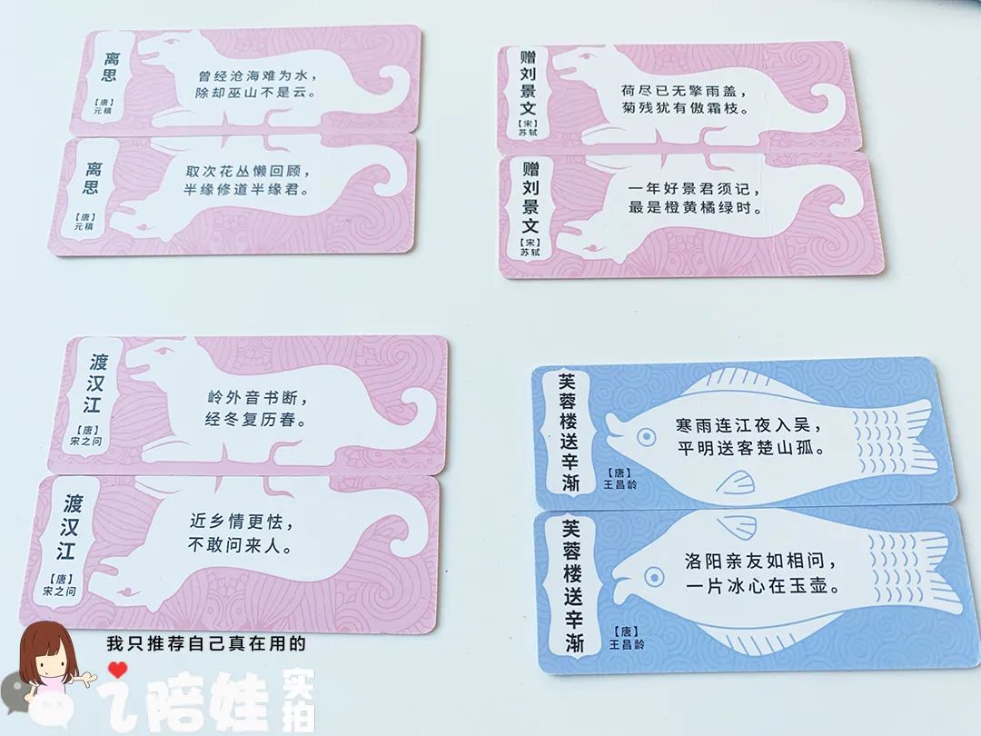 正好暑假的时候我就淘到一套很有意思的诗词桌游,都不用催,孩子主动就把背过的诗给溜熟了,还能接触很多新诗。