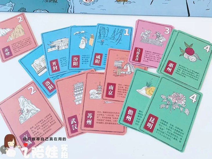 有些地理特点也挺给孩子种草的。像我闺蜜闺女现在对苏州很感兴趣,因为看到牌里说,苏州保持着“水陆并行”、“河街相邻”的格局,很想亲自去看看。