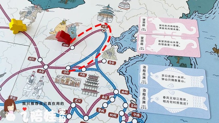 这套桌游除了诗词这条线以外,它地理、历史知识的看点也不少。而且运用游戏机制,把诗词和这些知识都串起来了。
