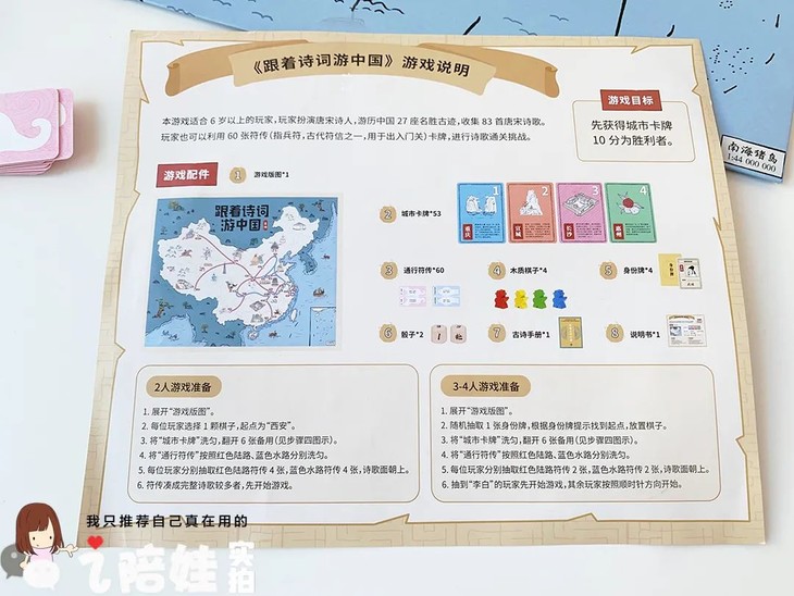 ● 适合多大孩子玩:这套桌游官方建议是6岁以上孩子玩。但我觉得对诗词有兴趣的幼儿园中大班孩子,也可以试着接触一下。用游戏的方式带入门,孩子兴趣容易激发出来。