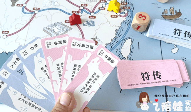 这套桌游把古代兵符和诗词结合,孩子有新鲜感,更愿意参与、主动背诗、学诗。诗词和地理知识融合得恰到好处,城市历史、人文风物、名人经历......孩子捎带脚儿做了个大语文的积累。