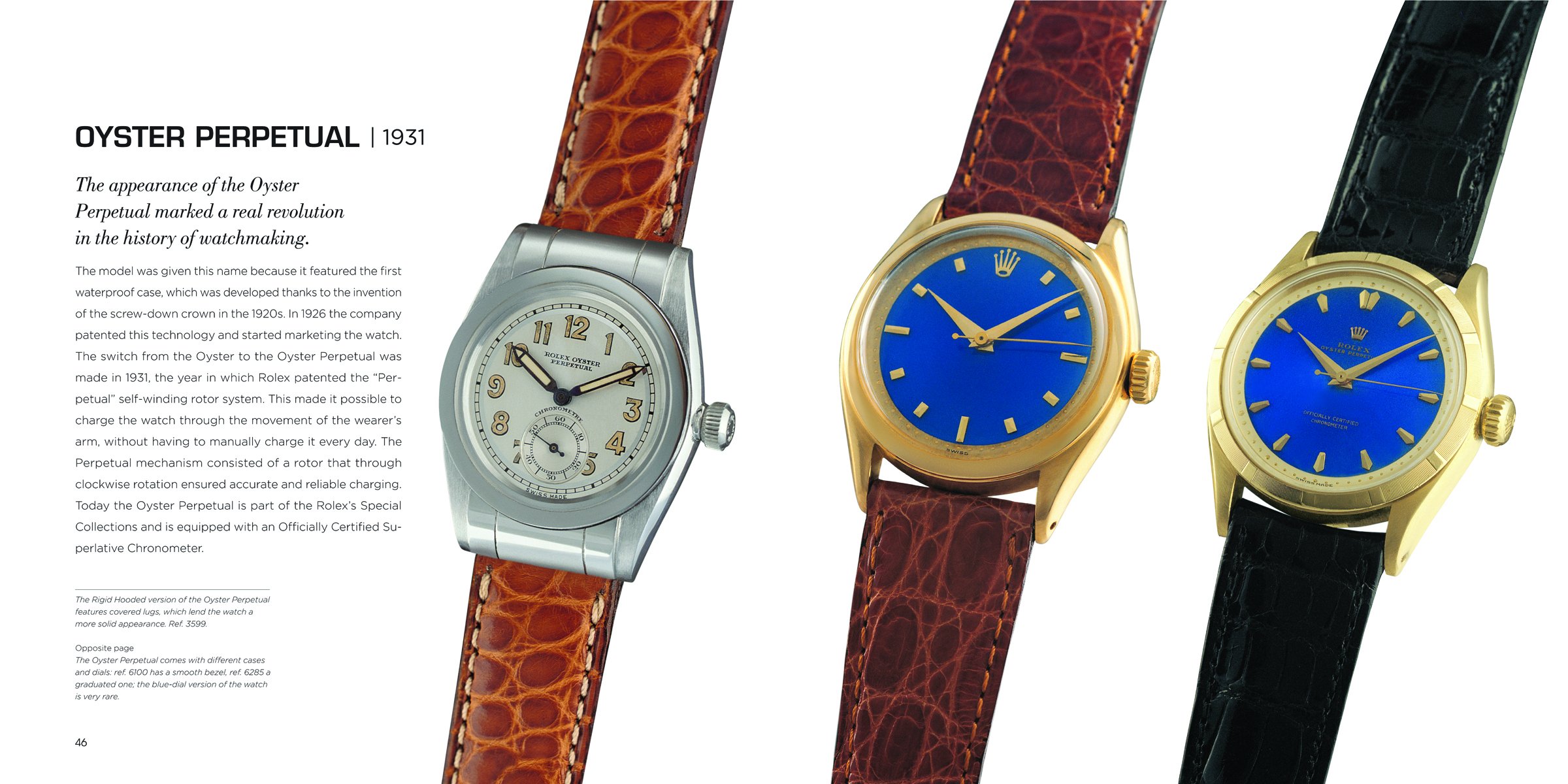 "The history of Rolex is inextricably linked to its founder Hans Wilsdorf, who took the first steps in the world of Swiss watchmaking as he dreamed about a timepiece that could be worn around the wrist. This experimental research led Rolex to achieve its highest goals in both technological innovation and in the use of the finest materials alone. Its models have been photographed on the wrists of political leaders, sports champions, and film and fashion celebrities, transforming each rolex into a fully-fledged status symbol, a synonym of elegance and precision.