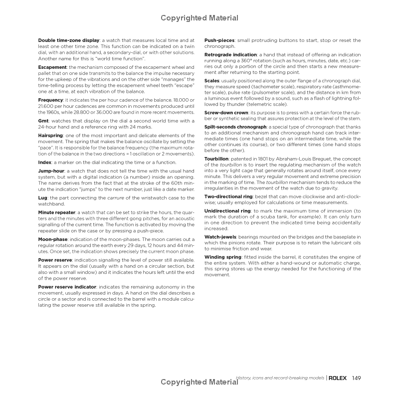 Including essays with a historical and technical slant, in-depth descriptions of the most representative pieces and a brief glossary, the pages in this book sparkle with golden hands, diamond-studded dials and patent leather watchbands, illustrated in period photographs and macro-detail. The volume ends with a chapter dedicated to the most amazing auctions that saw the sale of the Geneva-based company's vintage watches."