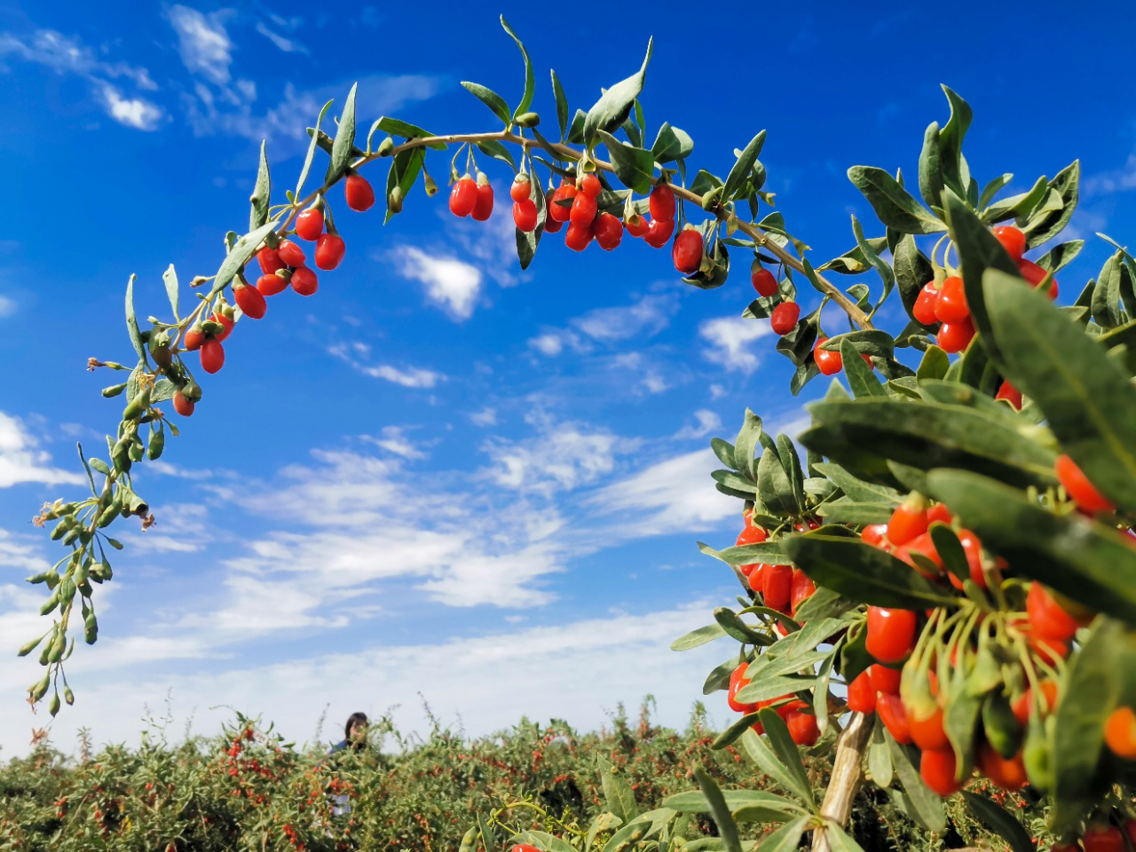 ②高光照。柴达木年日照长达3200小时左右,春夏每天日照不低于10小时,在此种强烈的高光照耀下,柴达木枸杞内部营养分裂生成迅速。