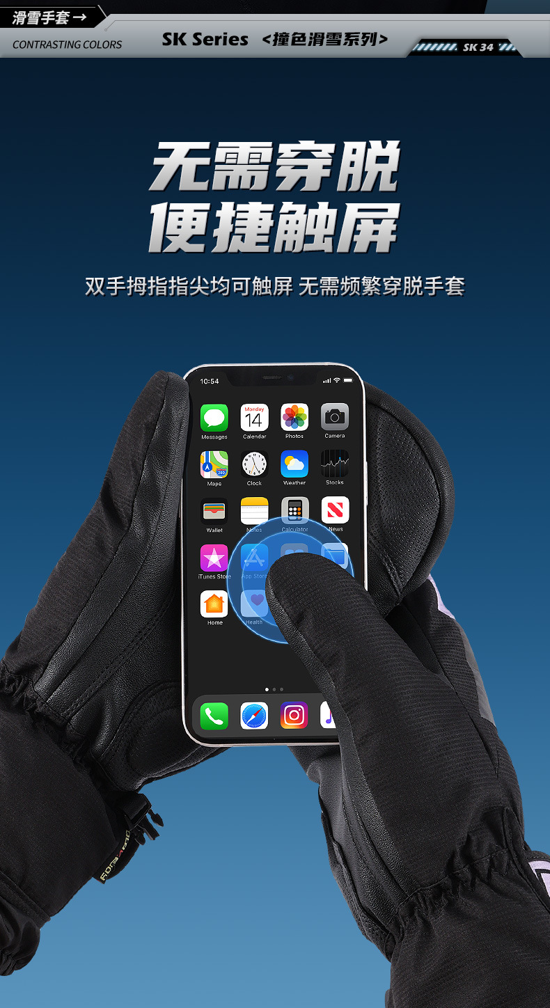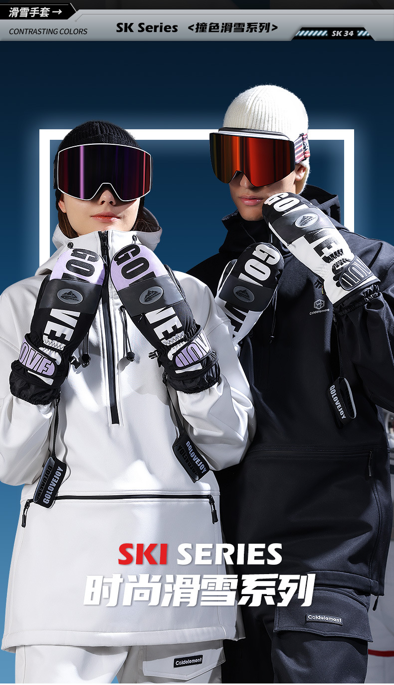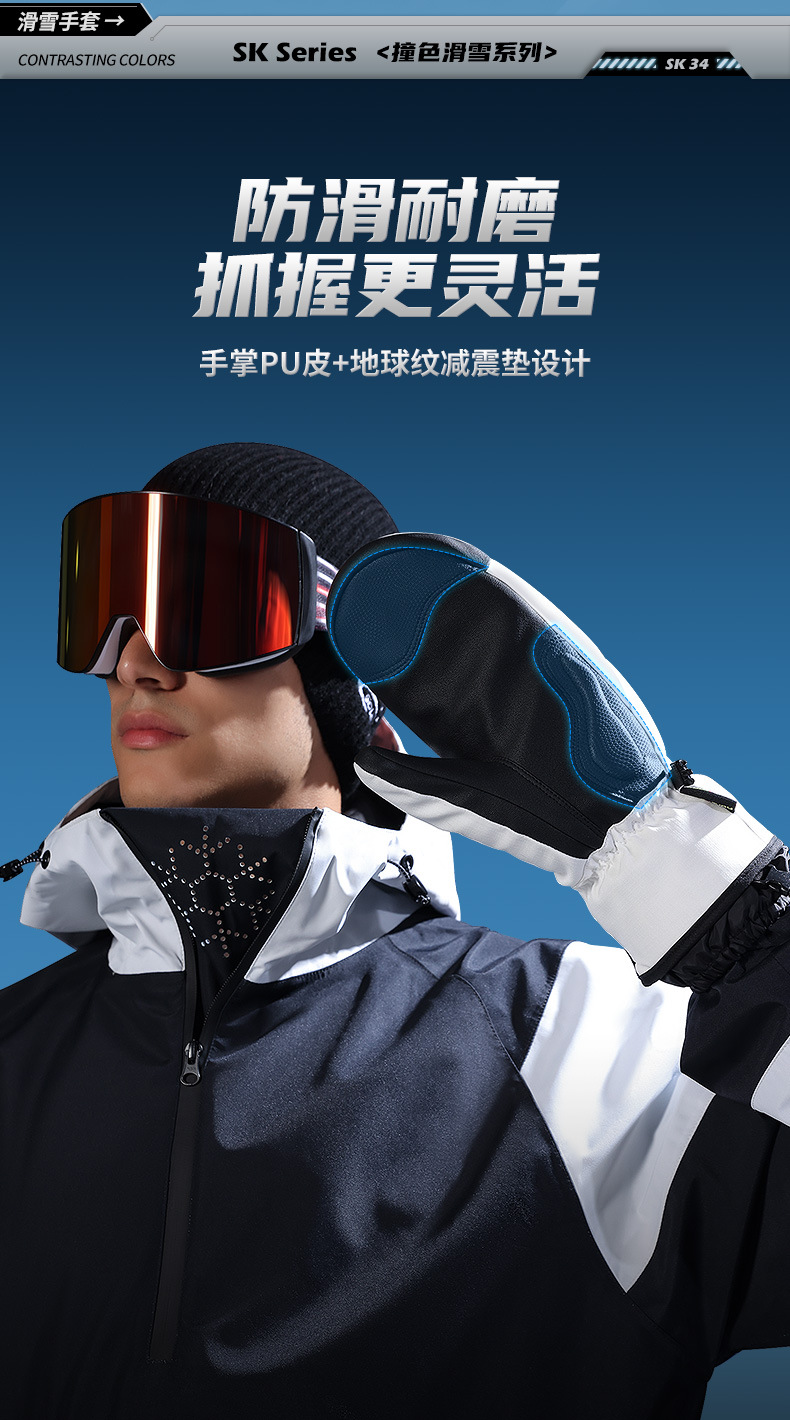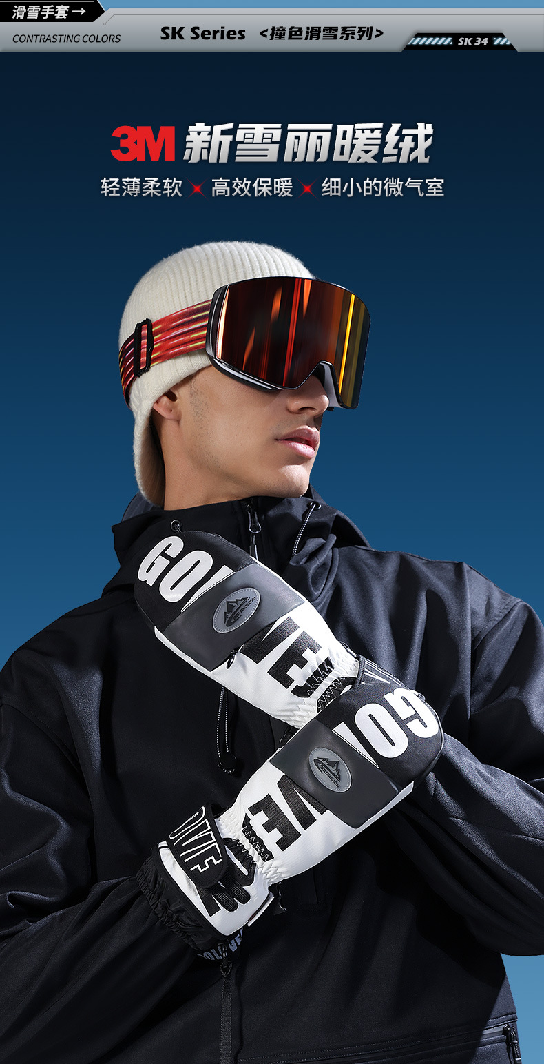 冬季保暖滑雪手套防水户外加绒加厚防风防寒触屏单板闷子手套
