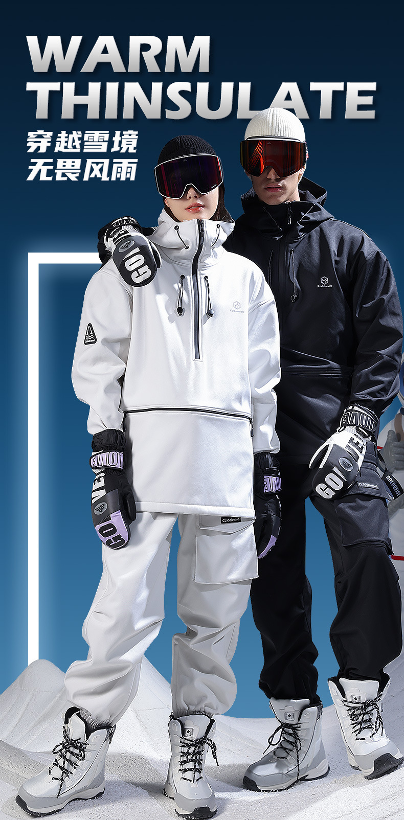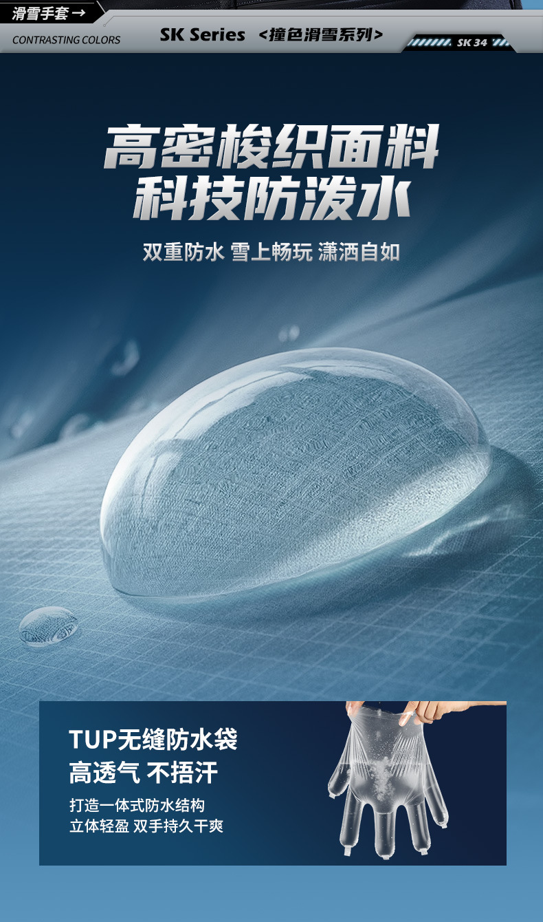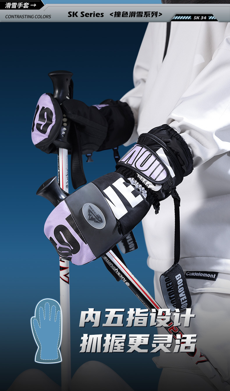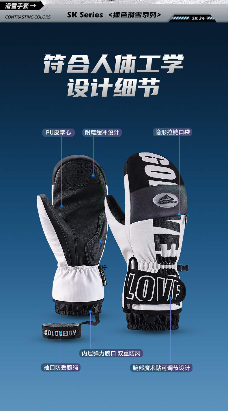 冬季保暖滑雪手套防水户外加绒加厚防风防寒触屏单板闷子手套