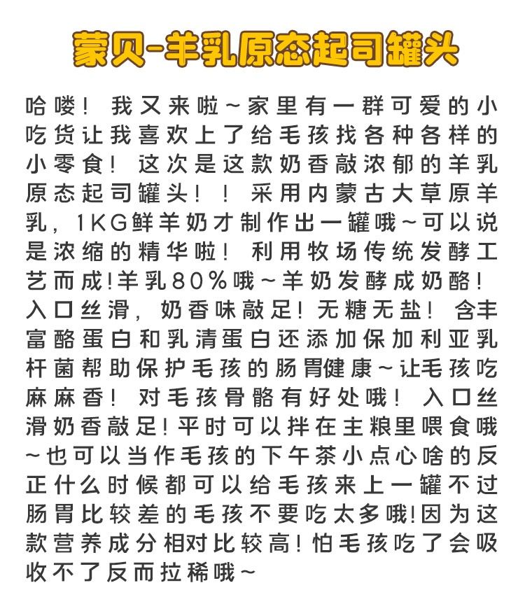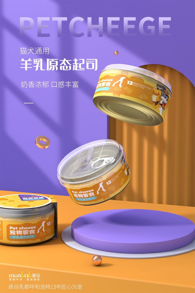 蒙贝羊乳起司宠物零食芝士奶酪罐头猫咪狗狗蛋糕补钙175g/罐