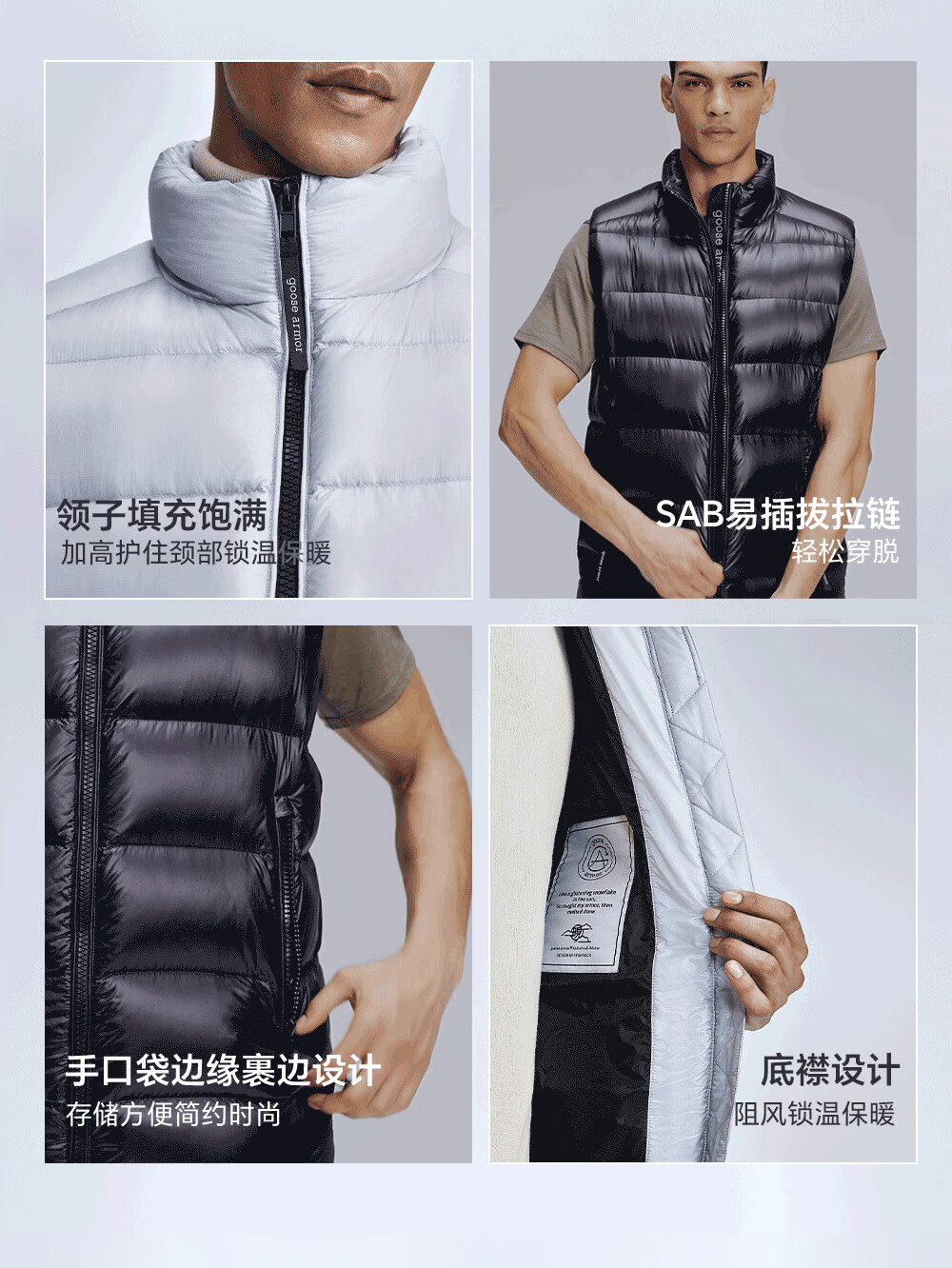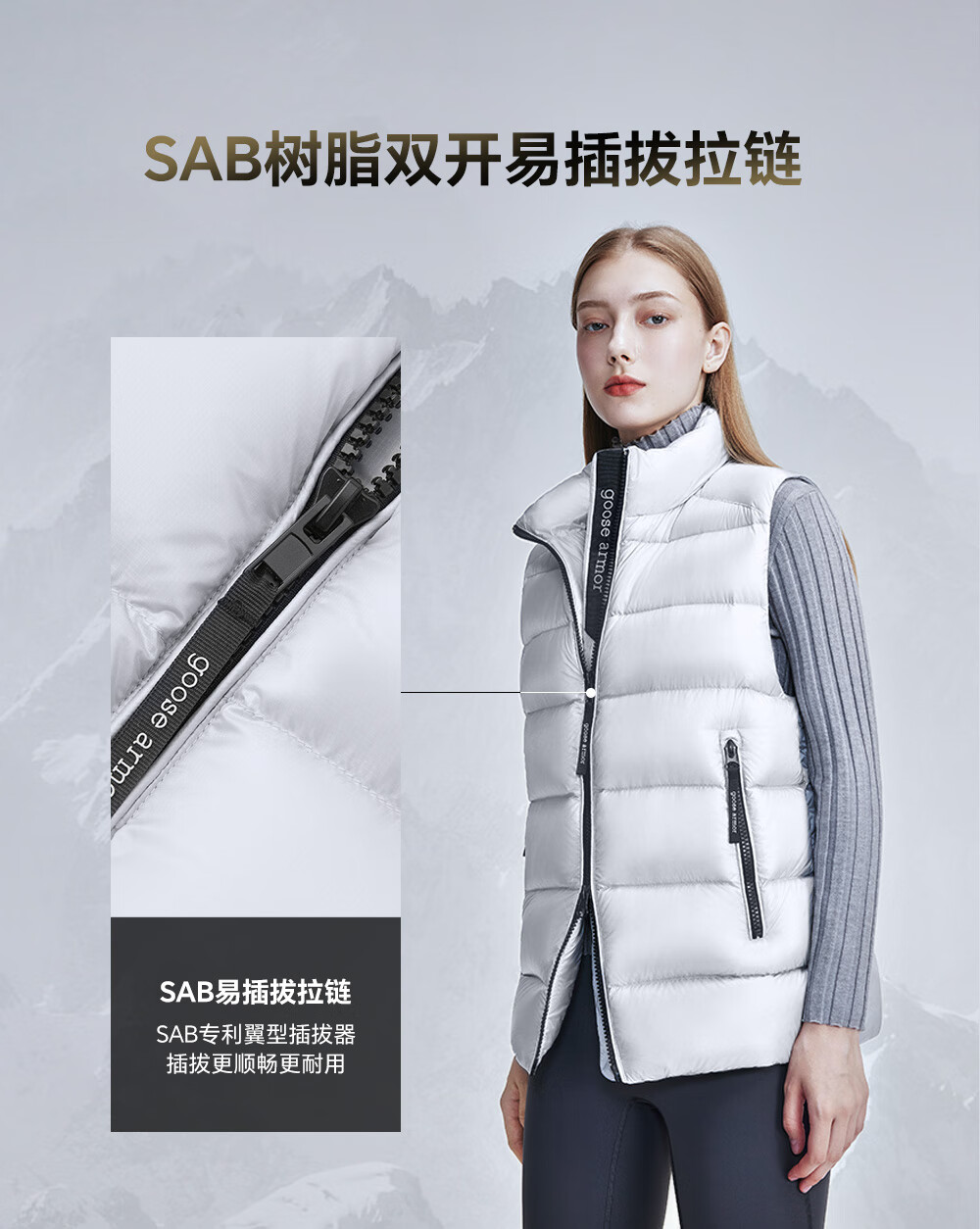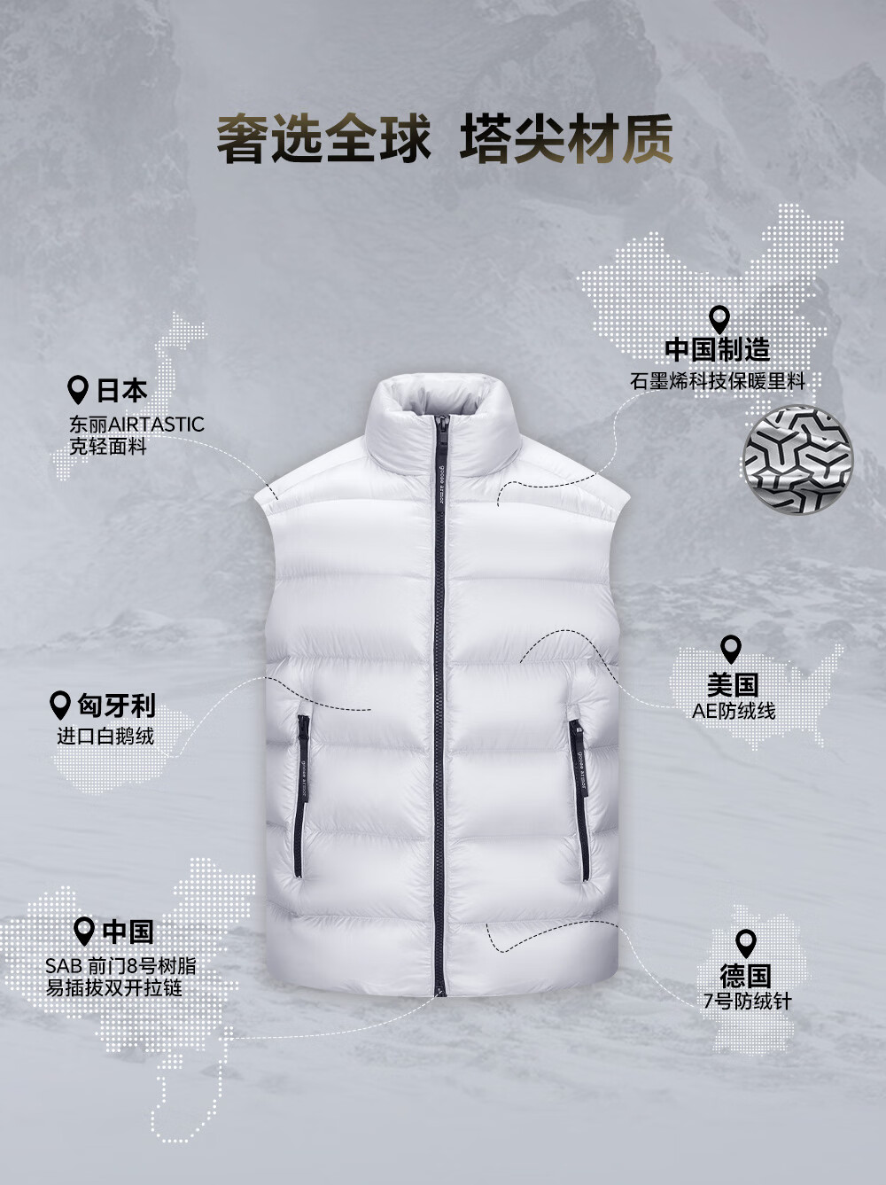 天石鹅铠甲秋冬季男女同款白鹅绒羽绒马甲外穿立领加厚户外运动坎肩G321