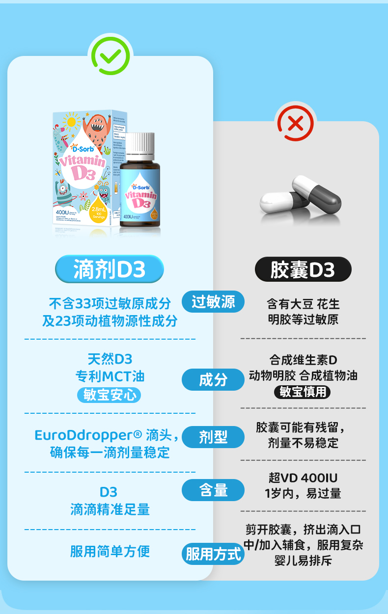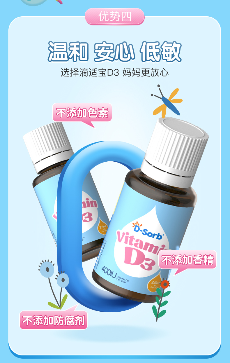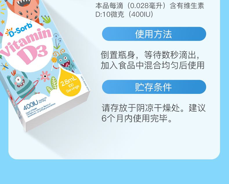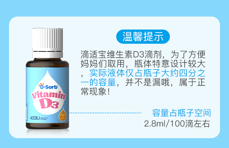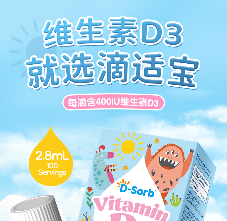 滴适宝(D-Sorb)维生素d3滴剂400IUvd3 加拿大原装进口 液体vd儿童D3滴剂2.8ml